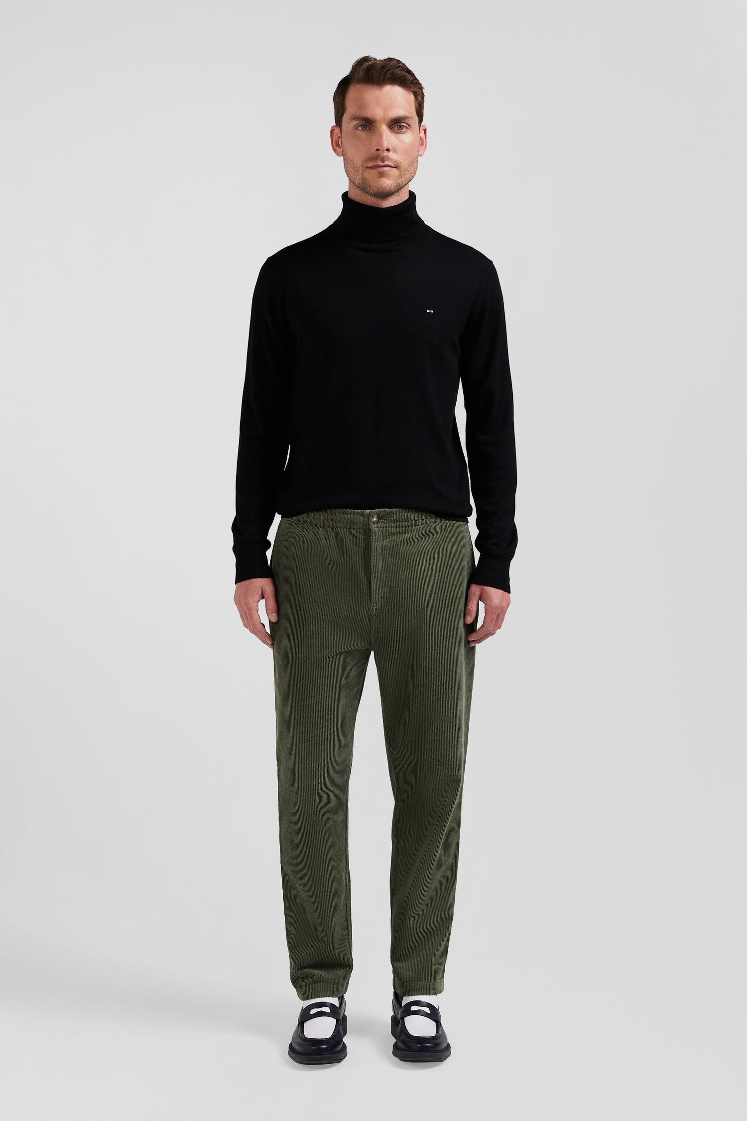 Our stretch cotton men's pants feature an elastic waistband for a perfect fit and added comfort. This model features a piped back pocket embellished with our signature tricolored ribbon and Italian pockets for added ease. The modern, slightly carrot cut offers a contemporary, comfortable silhouette. Available in a range of colors, these timeless men's pants are the ideal combination of functionality and style.