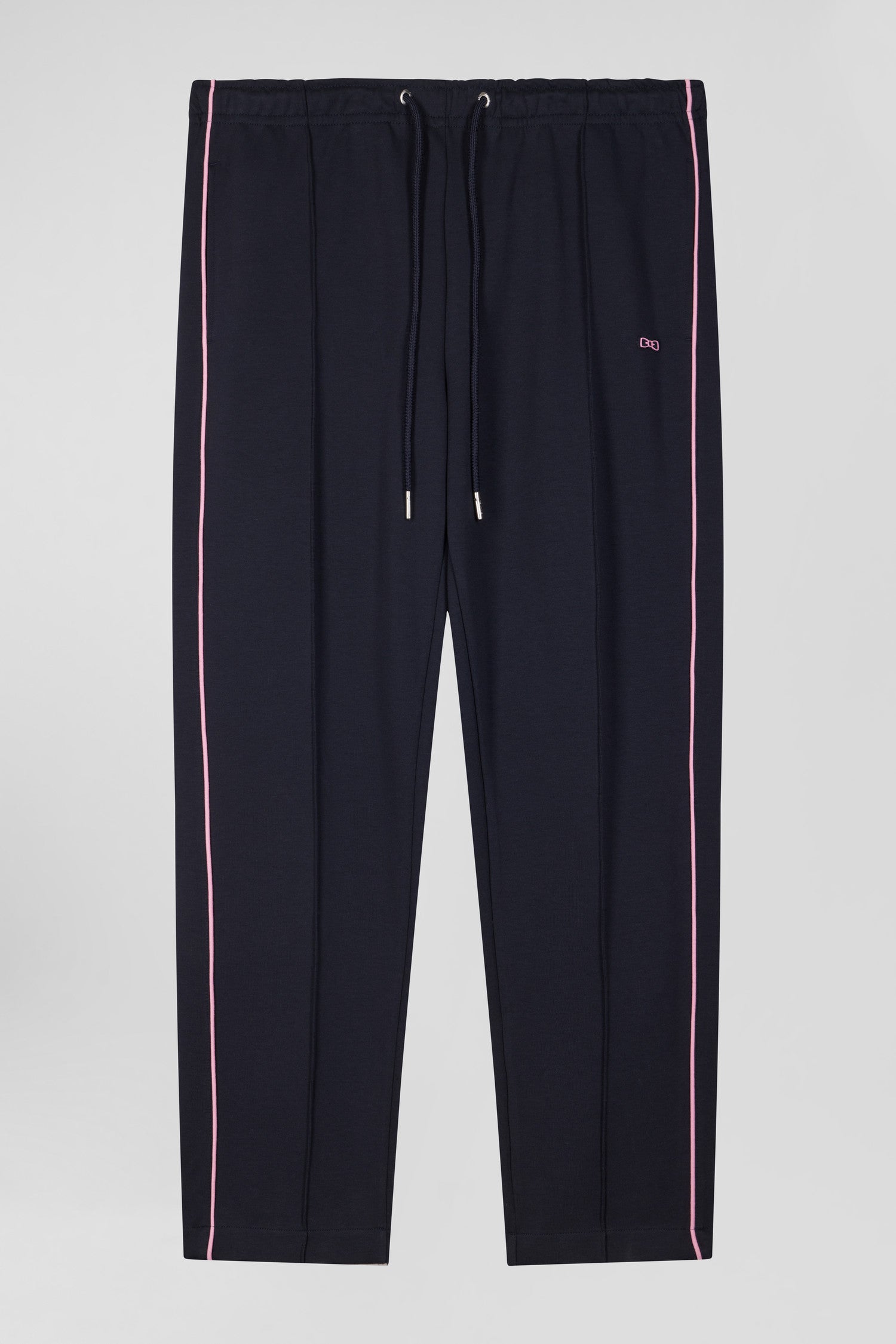 Regular navy blue mixed cotton jogging bottoms with pink piping
