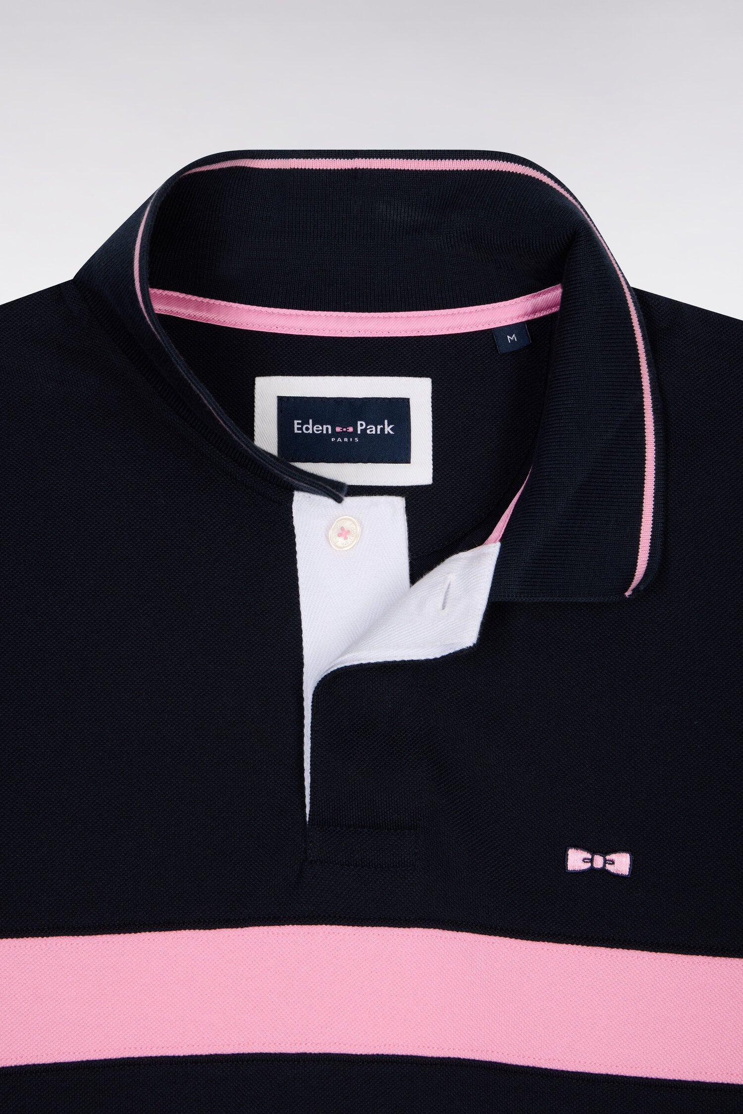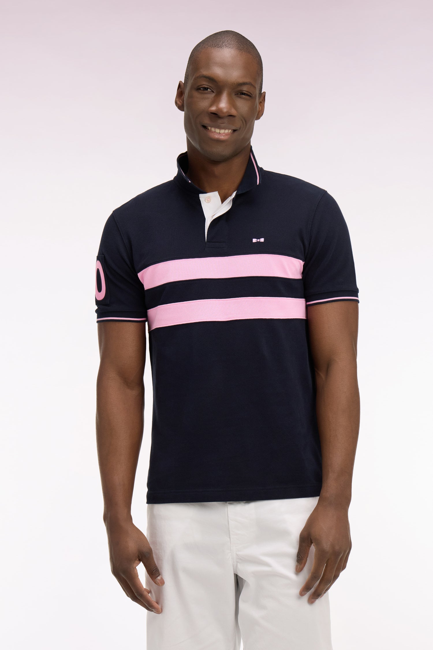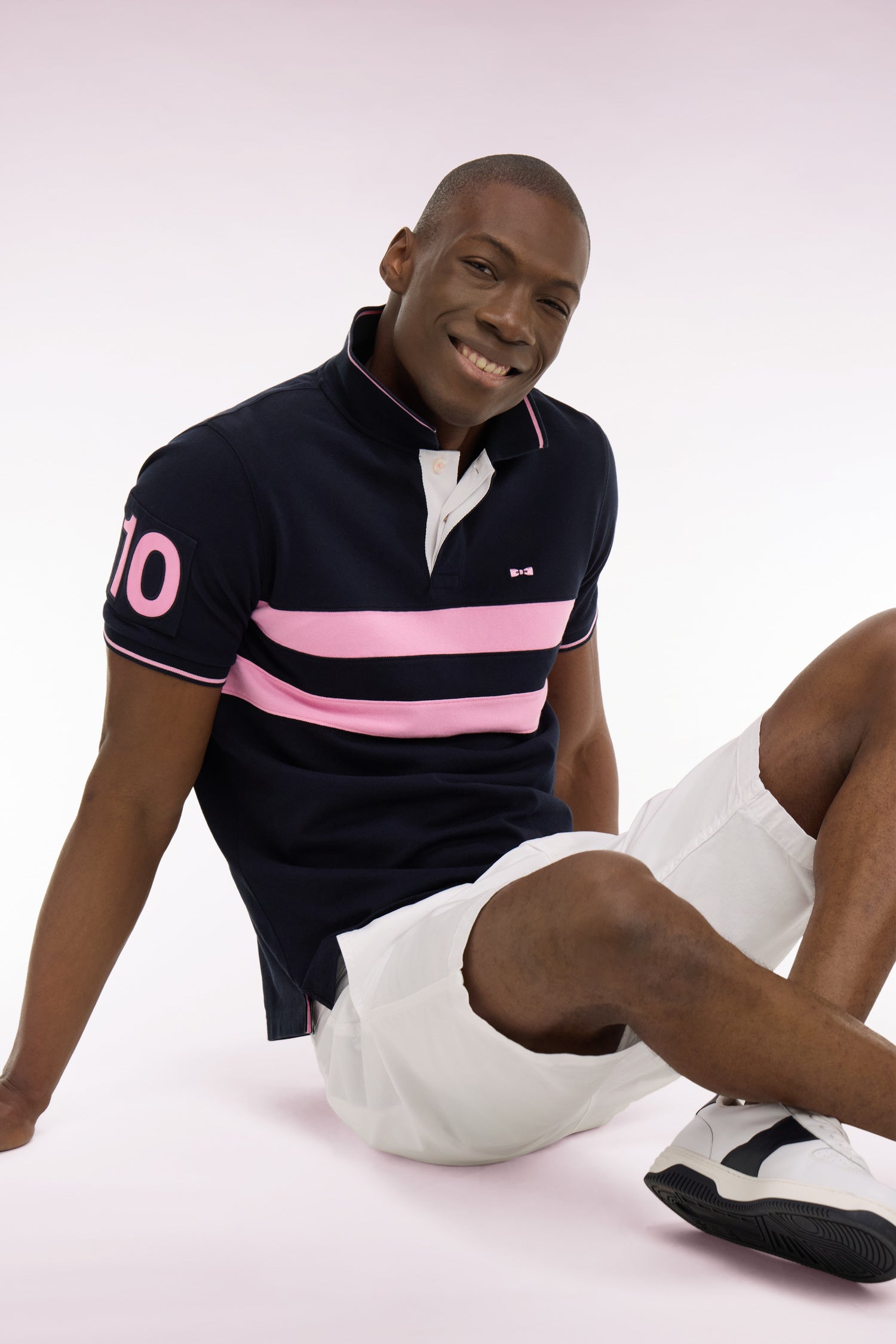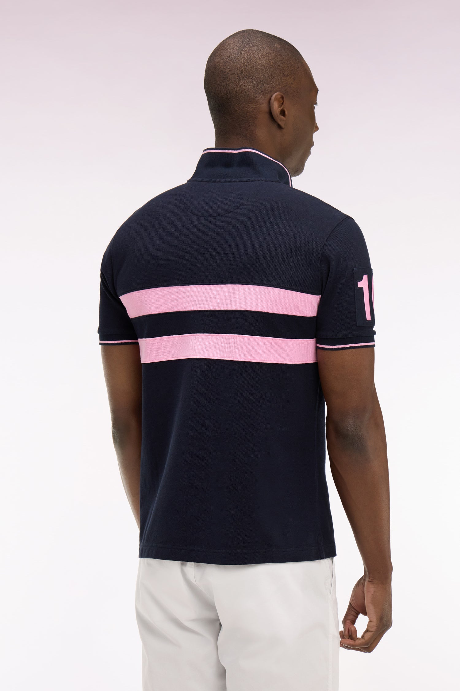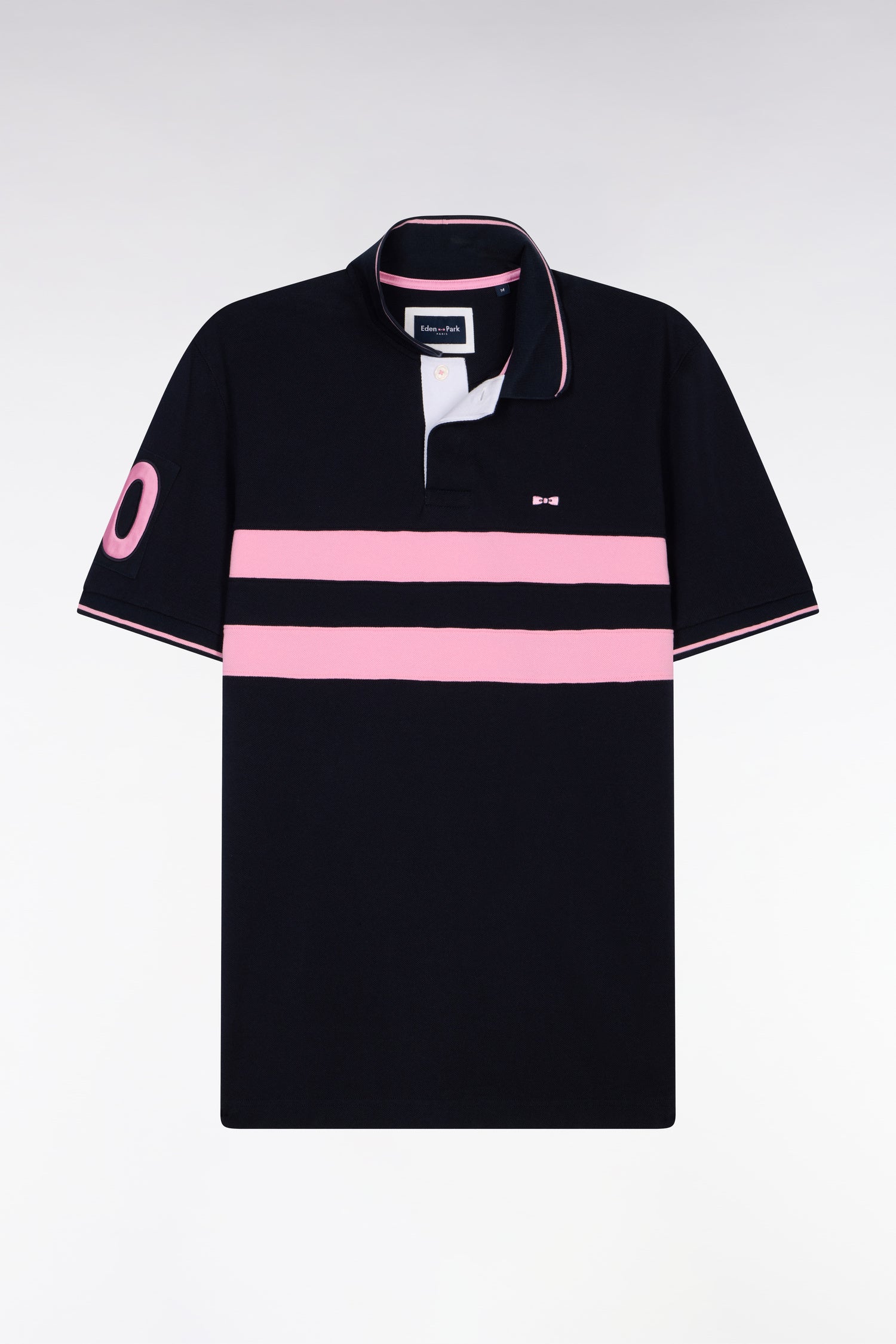Polo à manches courtes en piqué coton marine à rayures coupé cousu
