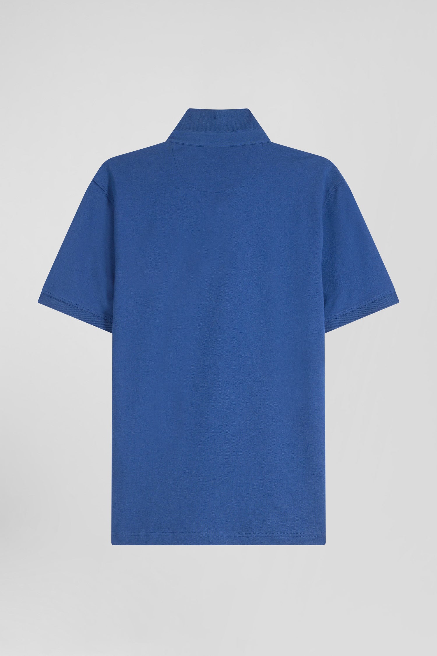 Slim dark blue short-sleeved stretch cotton polo shirt