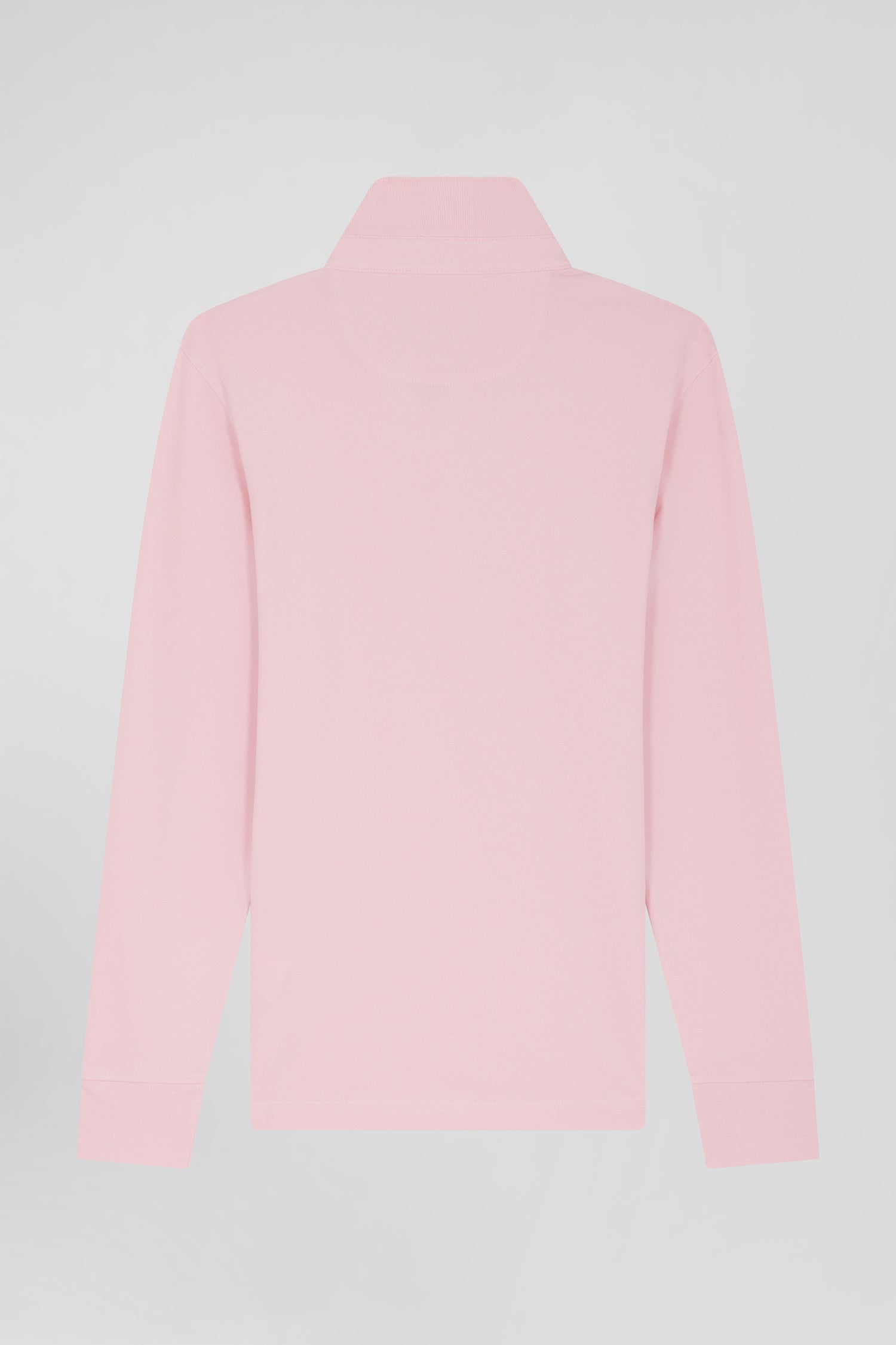 Slim pink long-sleeved cotton piqué polo shirt