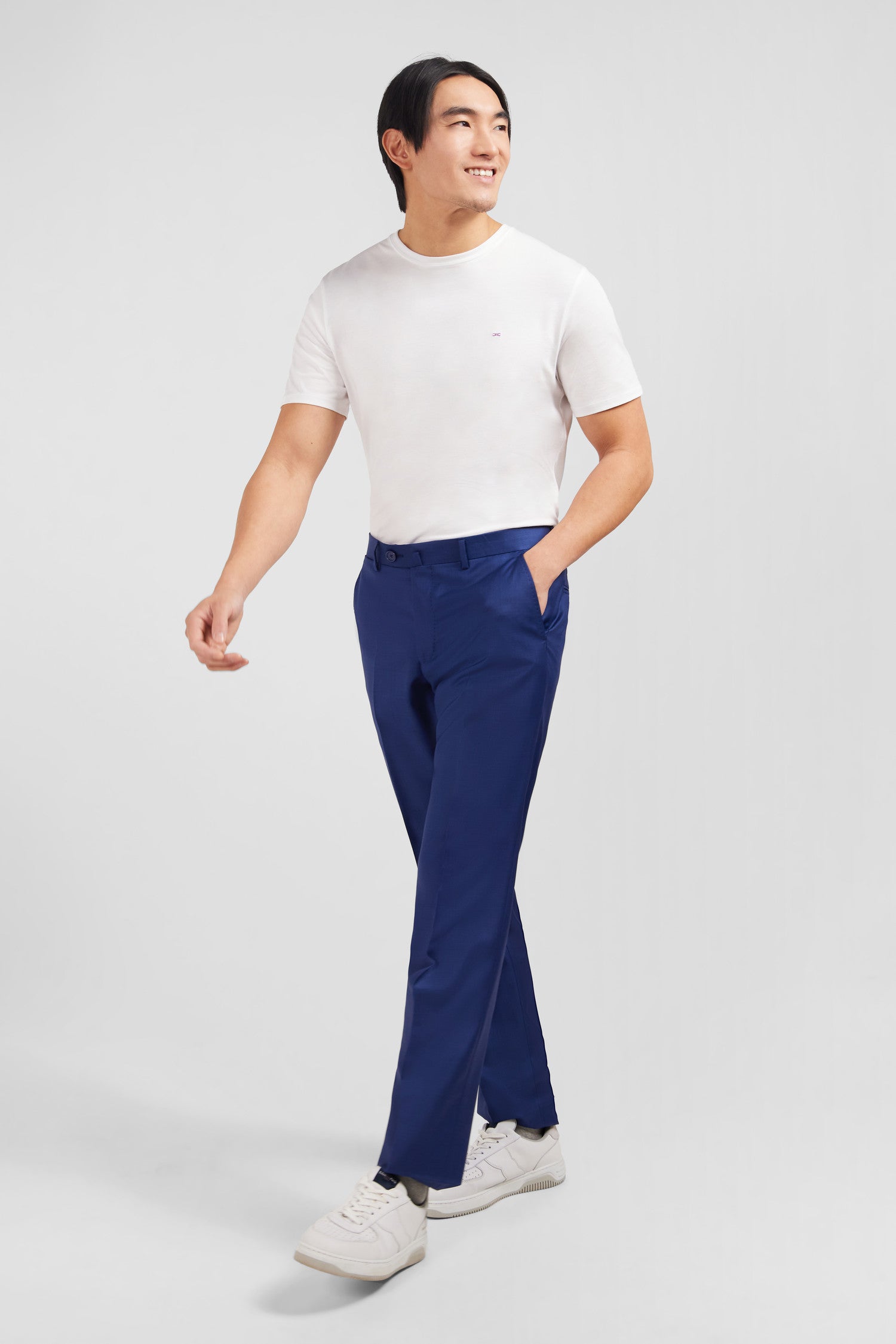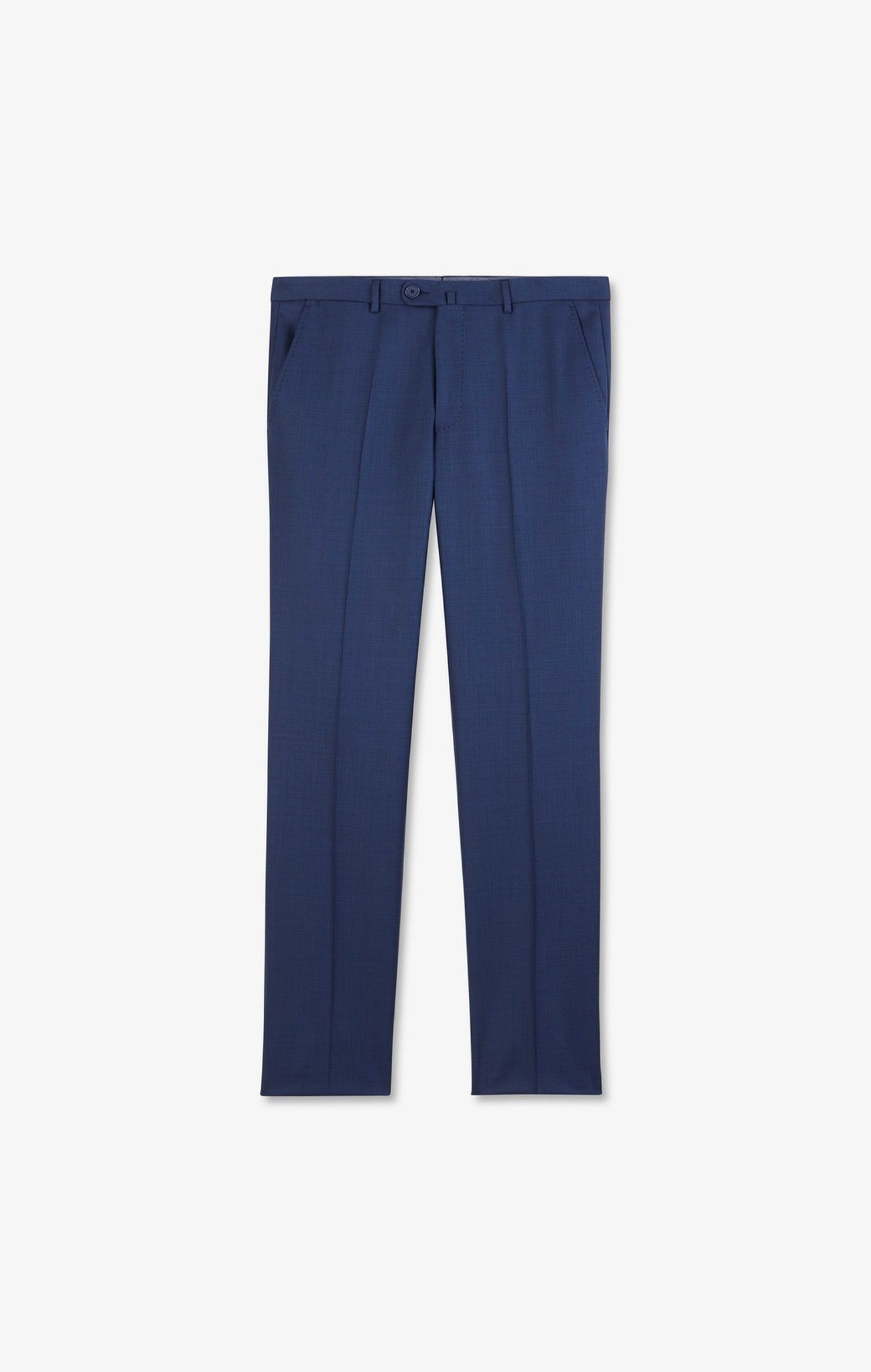 Designed in fine wool, these pants are as elegant as they come, with their straight cut and broken-pleated legs. They feature an adjustable waistband with button placket and belt loops. Functional, the pants feature Italian pockets, a ticket pocket in the seam below the waist, and two welt and buttoned pockets on the back.