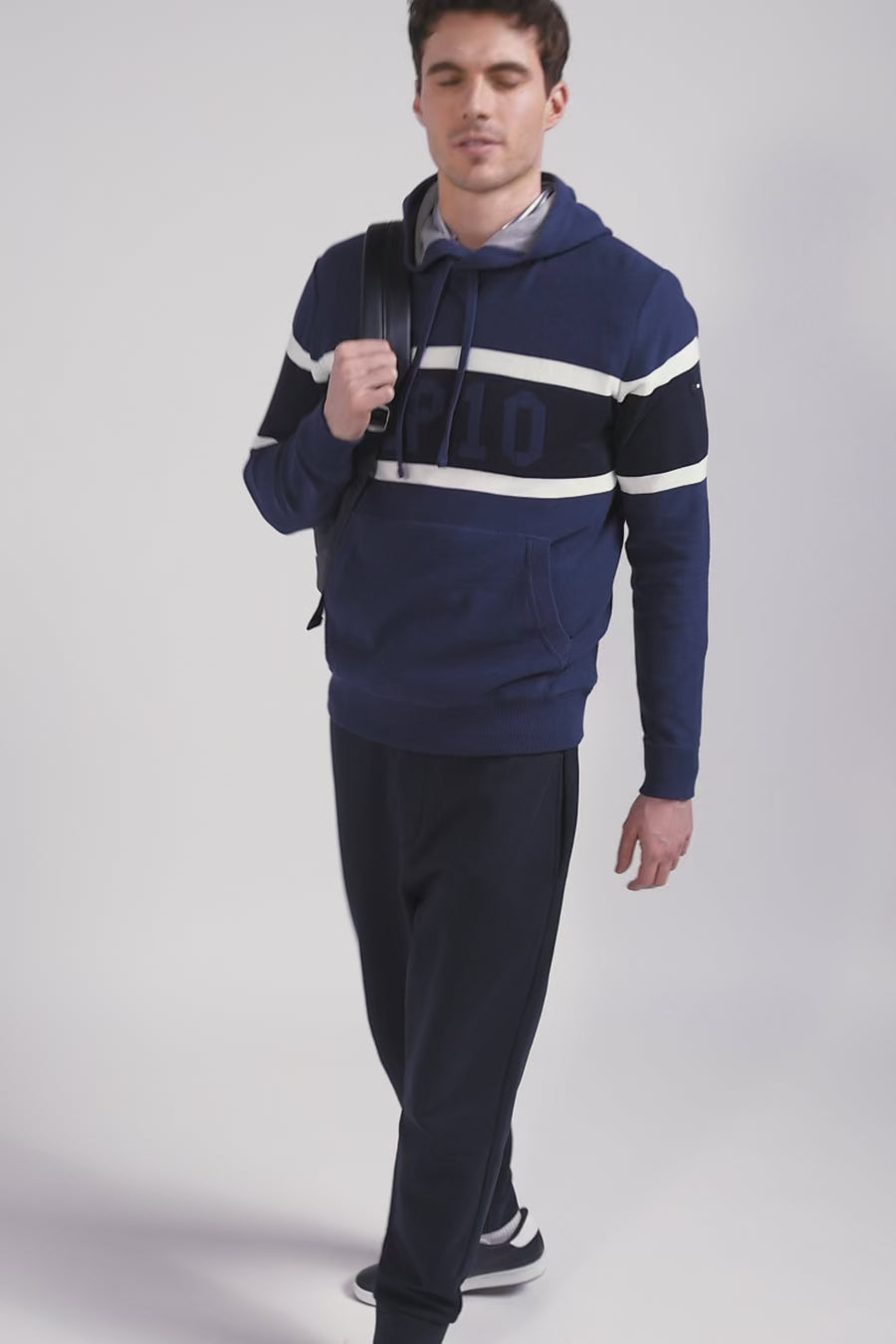 Regular dark blue hooded jumper with EP10 jacquard