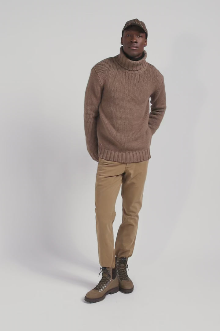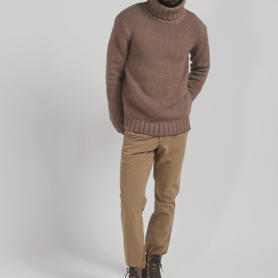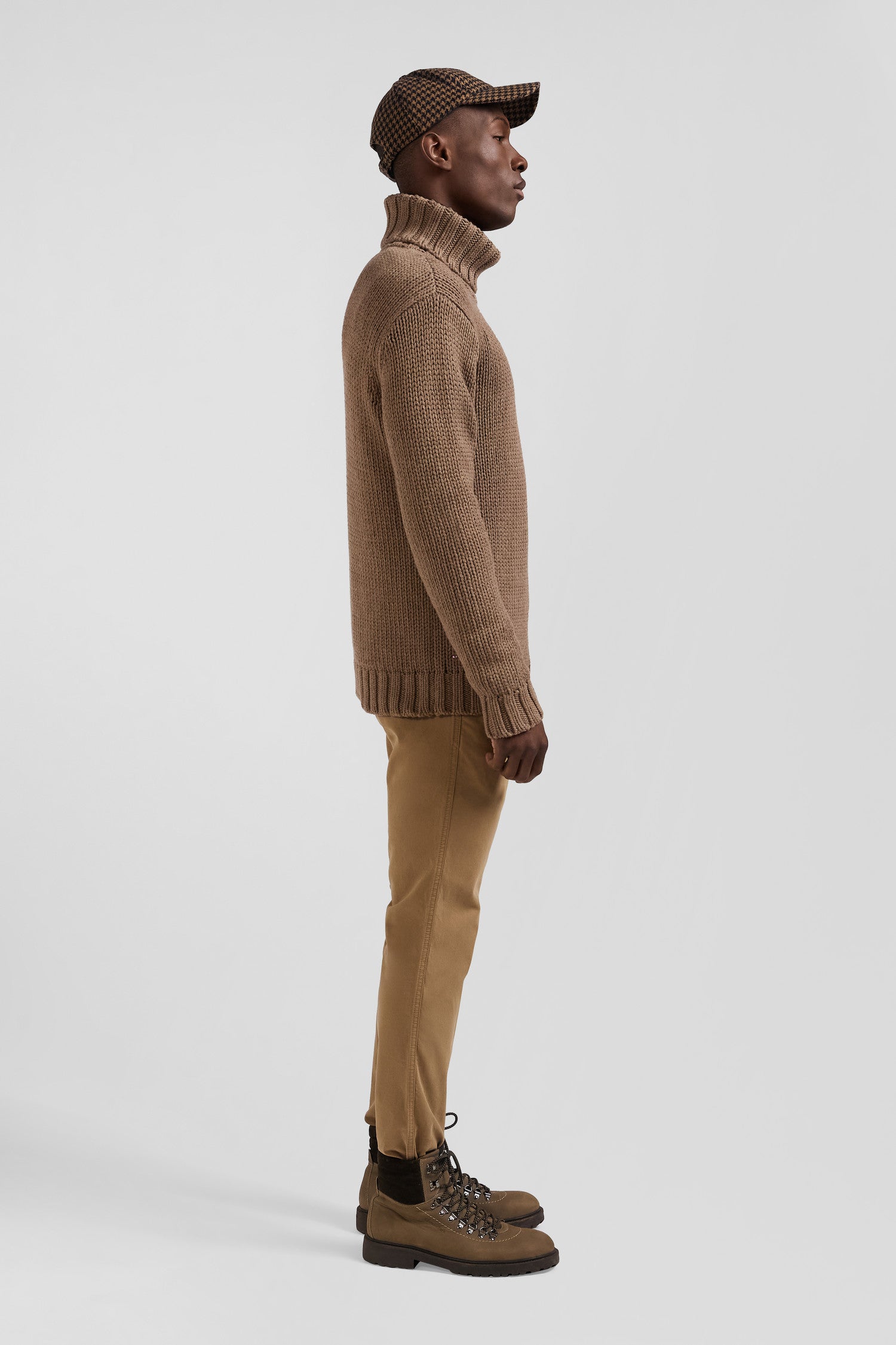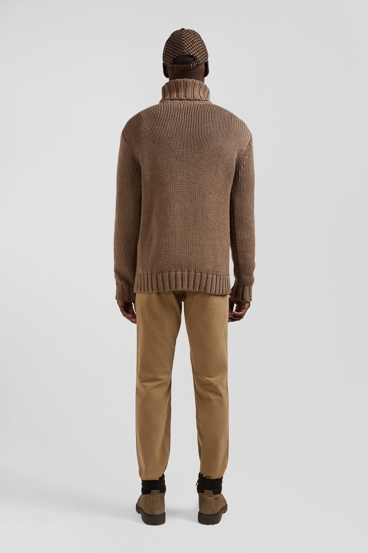 A true timeless, this men's turtleneck sweater can be worn to the office or for moments of relaxation. Made from a soft blend of wool and cotton, this chocolate-colored sweater brings a touch of autumn to your seasonal wardrobe.