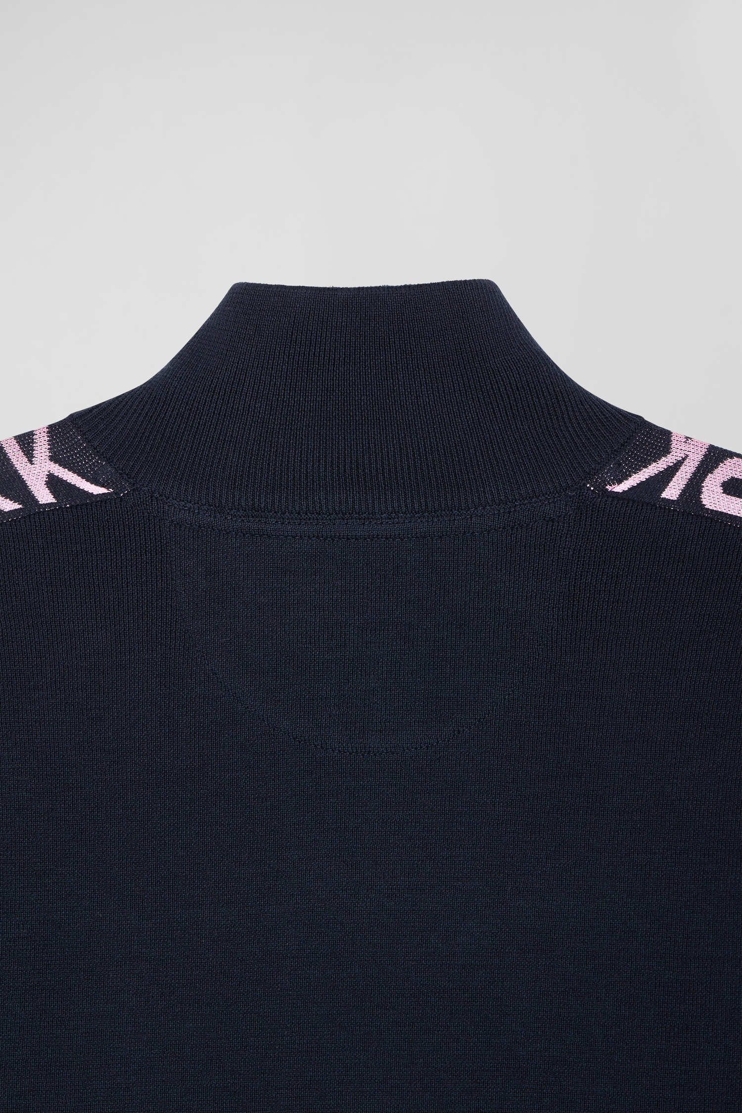 Regular navy semi-zipped cotton jumper with jacquard details