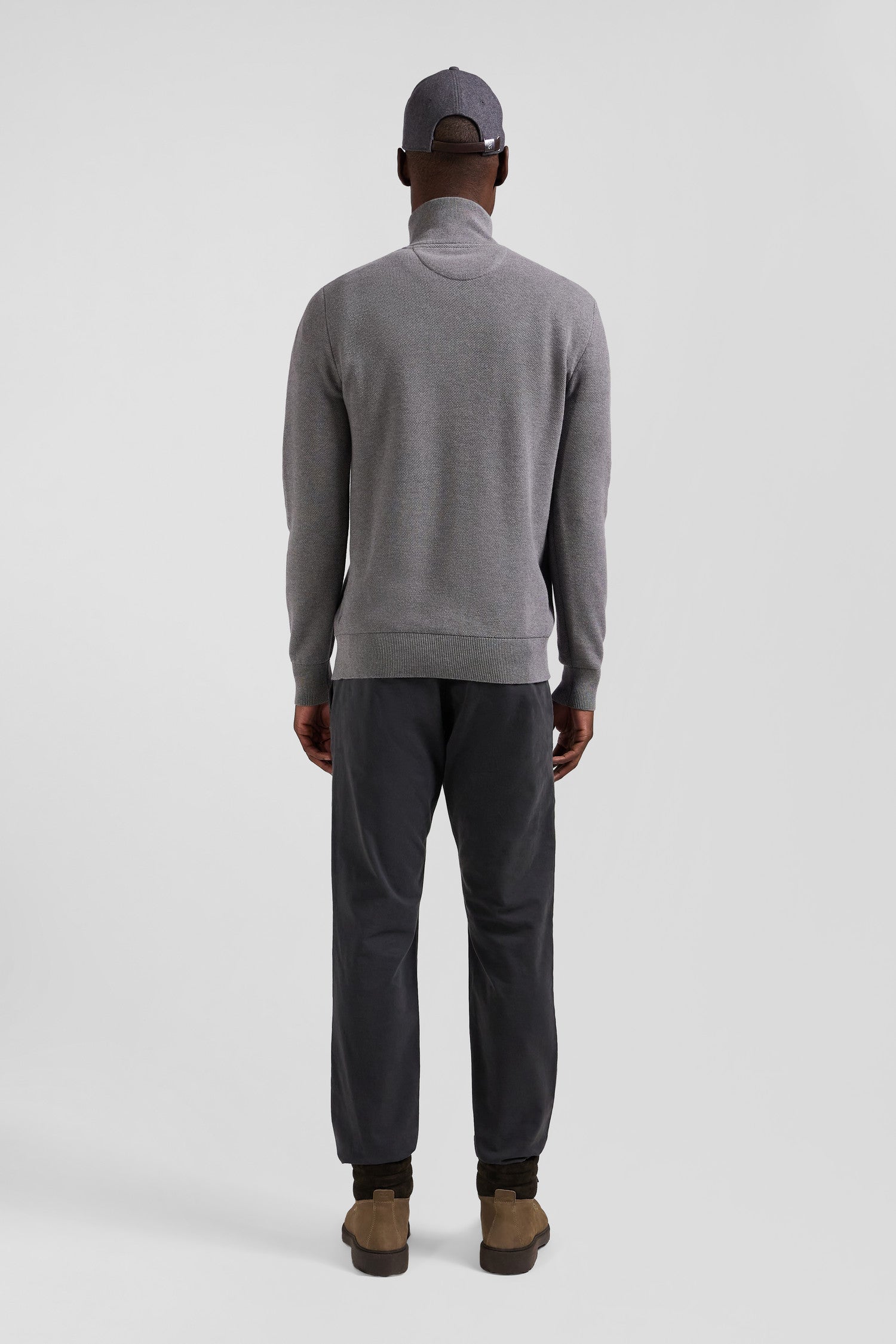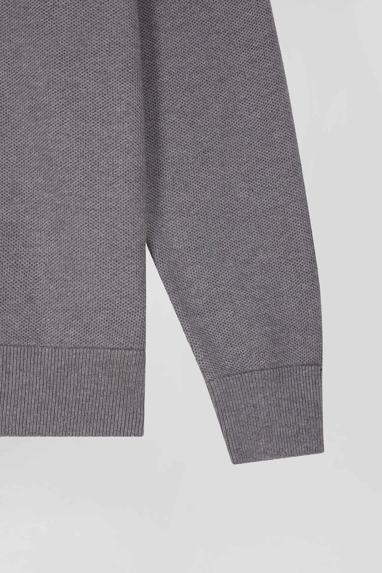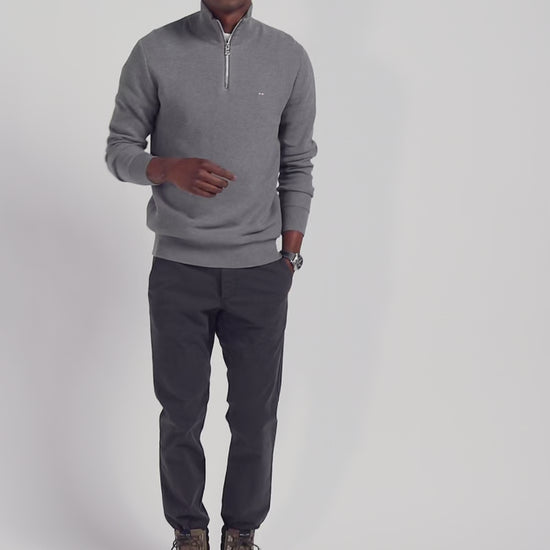 Regular grey cotton semi-zipped jumper