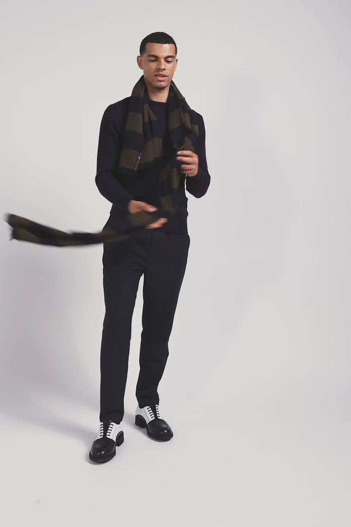 Our round-neck sweater, crafted from a blend of wool and cotton fibers, features a textured micro bow-tie motif, the distinctive Eden Park emblem. This exclusive knit revisits our logo in a subtle, elegant way, for an allover effect that combines discretion and character. This soft sweater, available in 3 colors, is a celebration of our House's identity and masculine elegance.