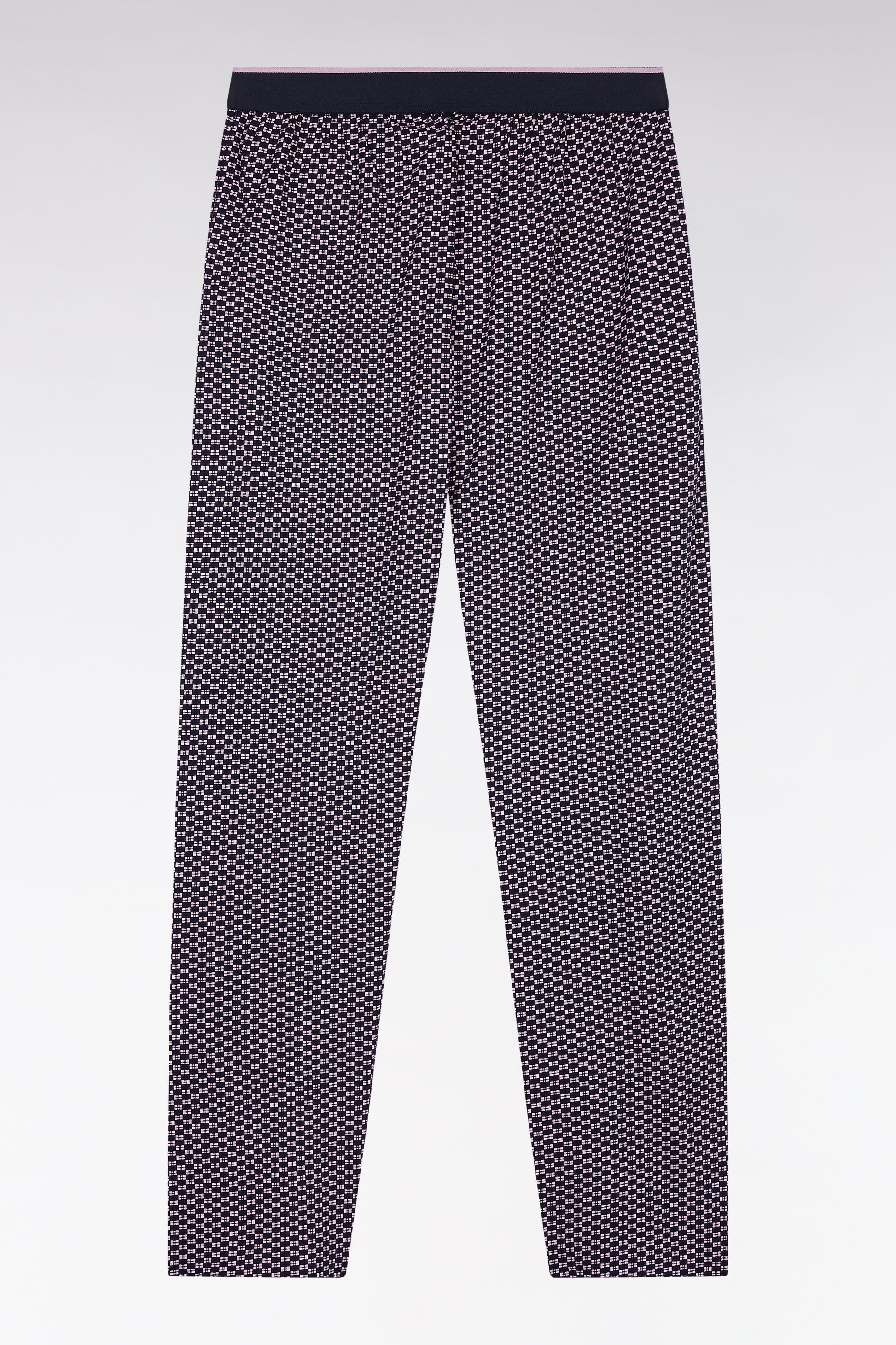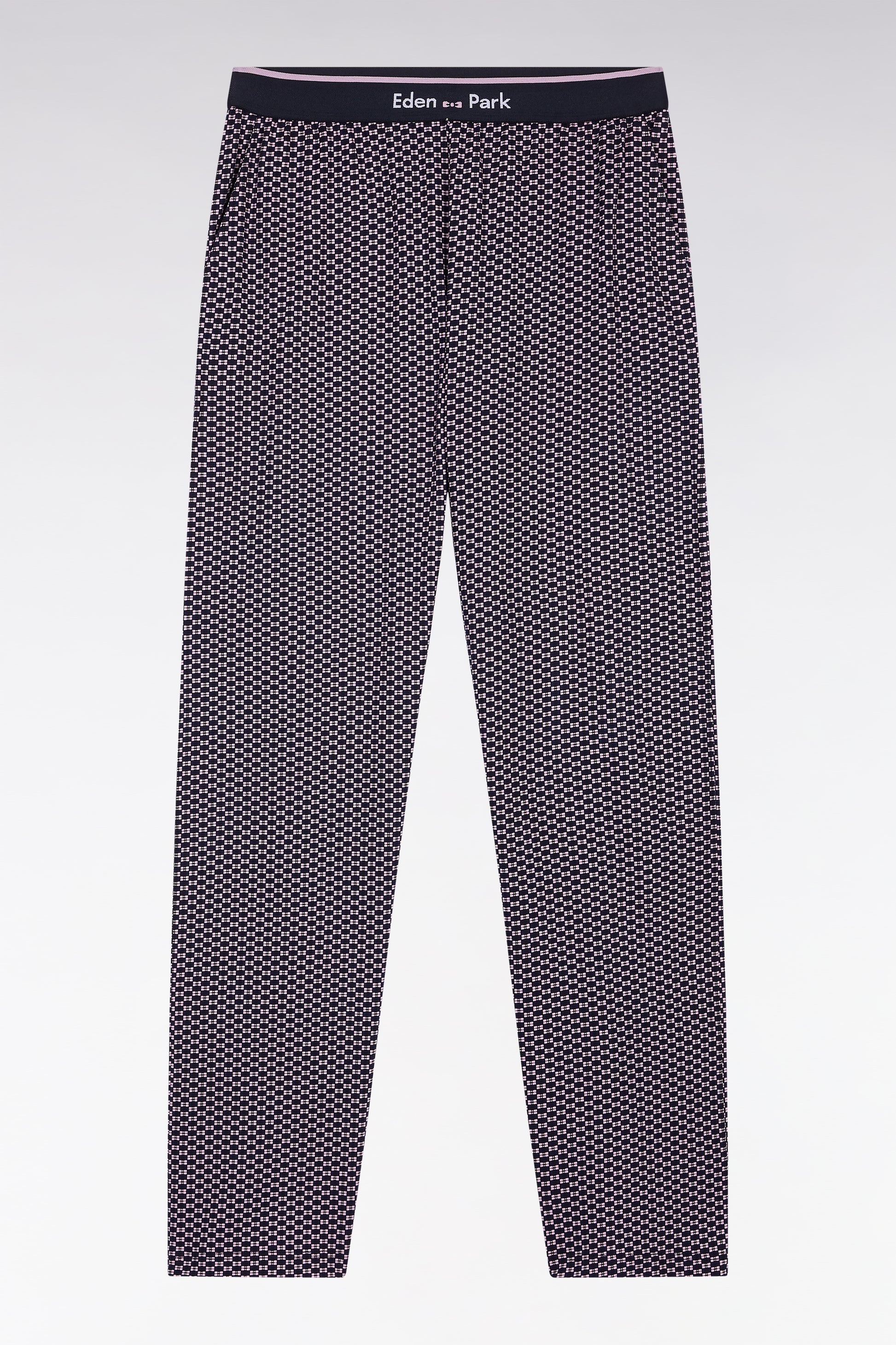 Long pyjamas in navy cotton jersey with pink patterned pants