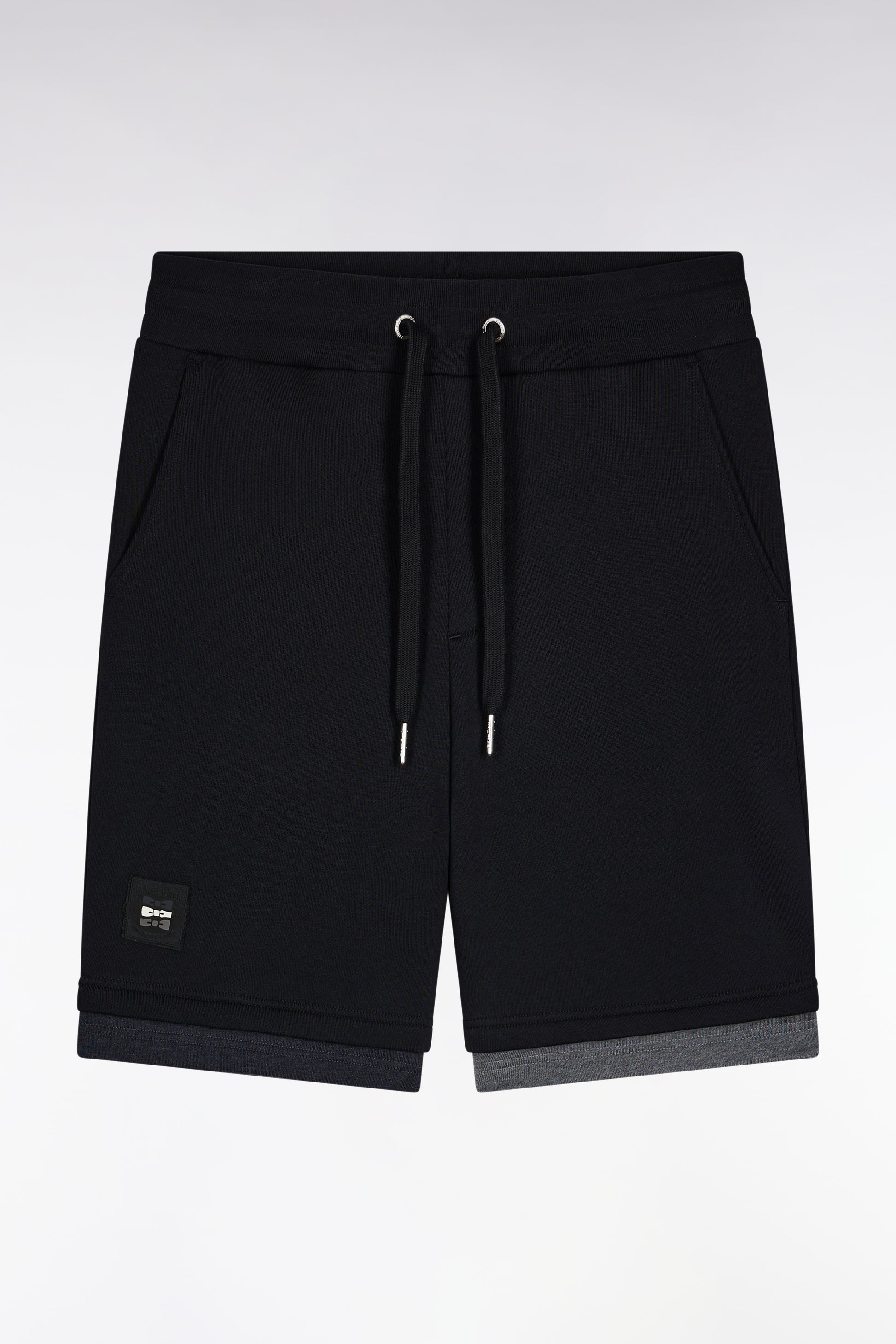 Black cotton fleece shorts, loose fit