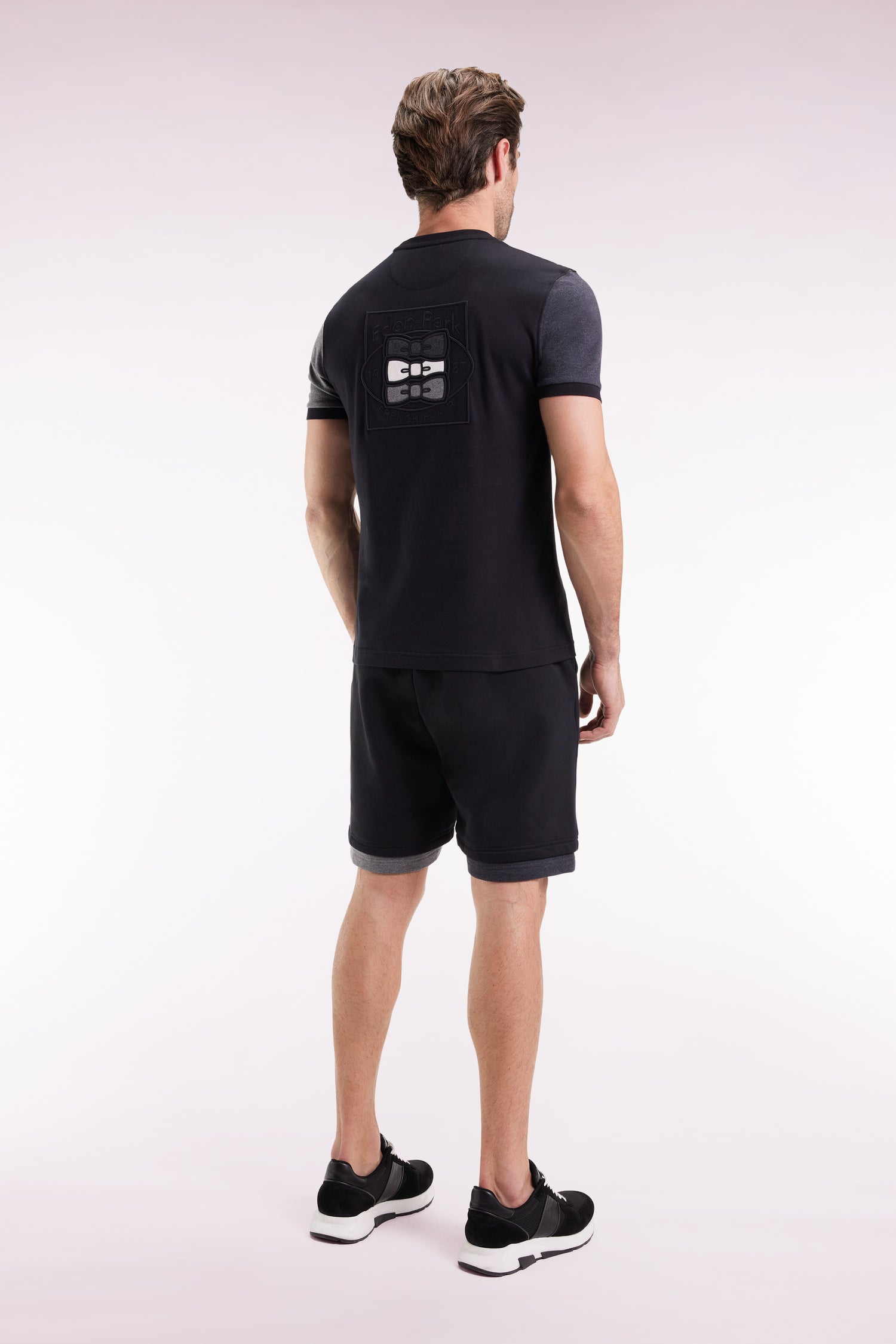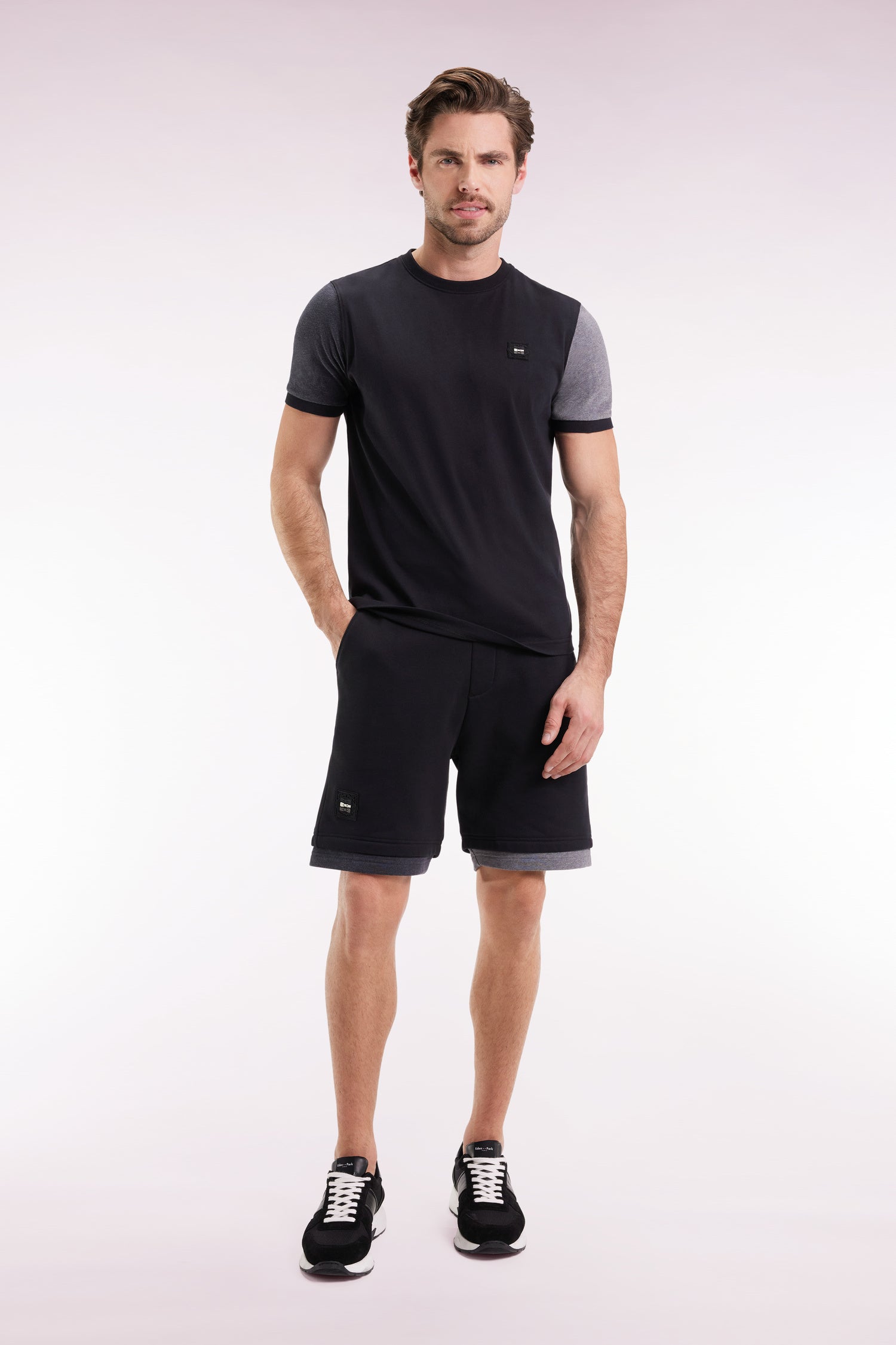 Black cotton T-shirt with contrasting short sleeves