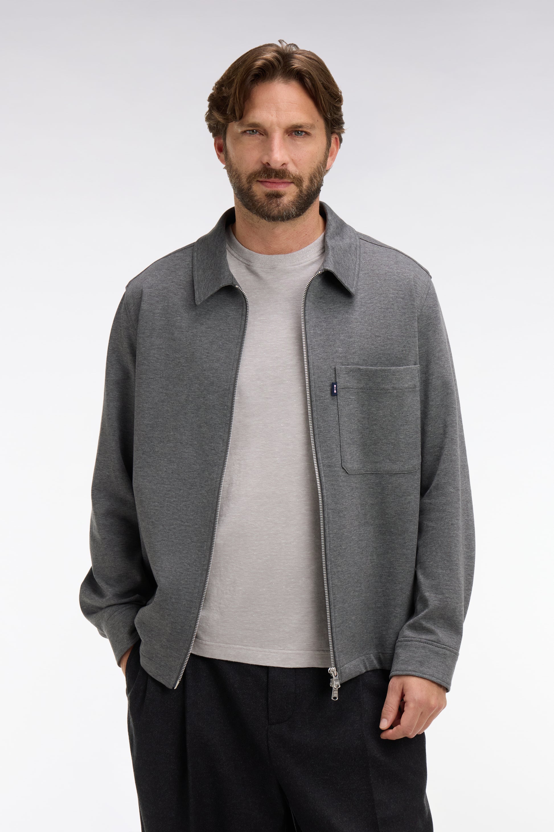 Cette surchemise zippée allie confort et élégance décontractée. Sa matière en coton stretch et sa coupe droite offrent une allure moderne et facile à porter.
