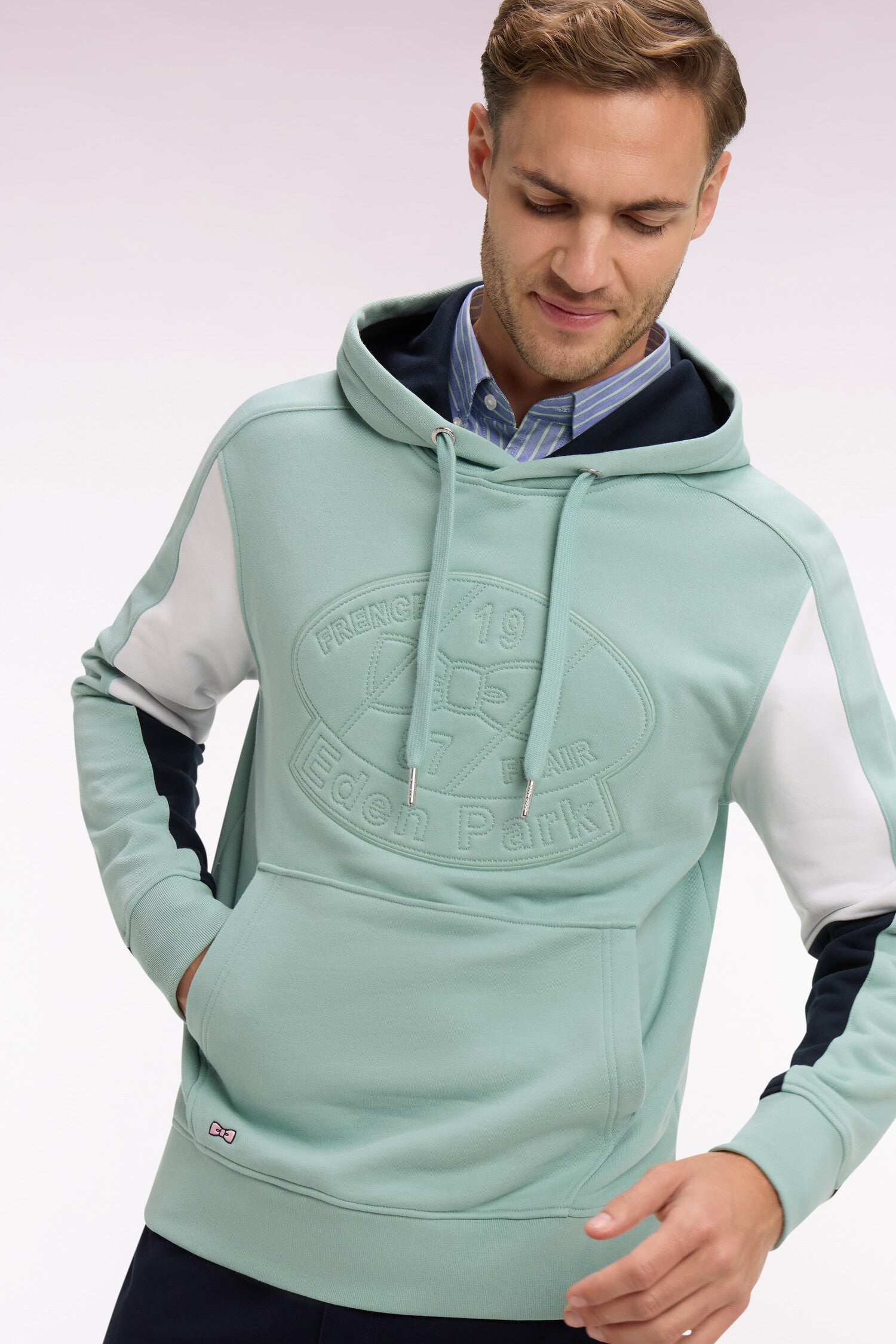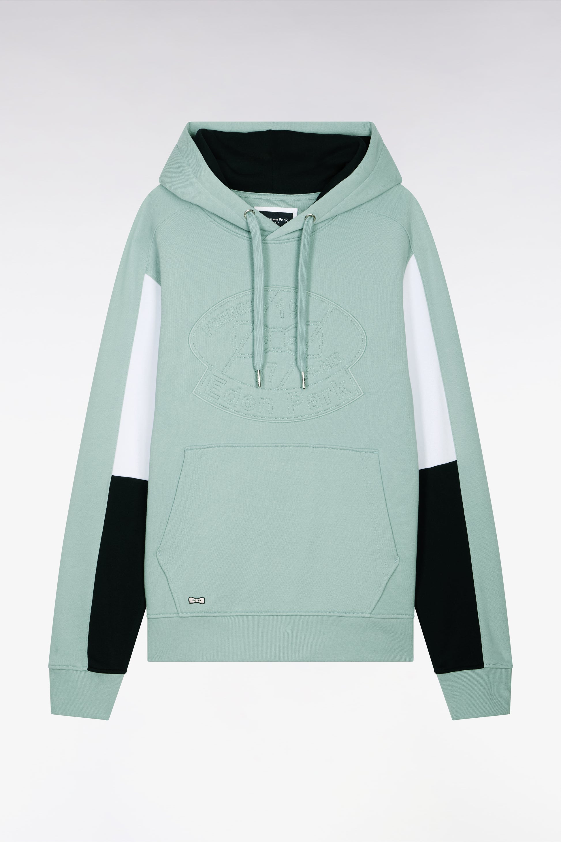 Sweatshirt à capuche en molleton coton vert d'eau brodé