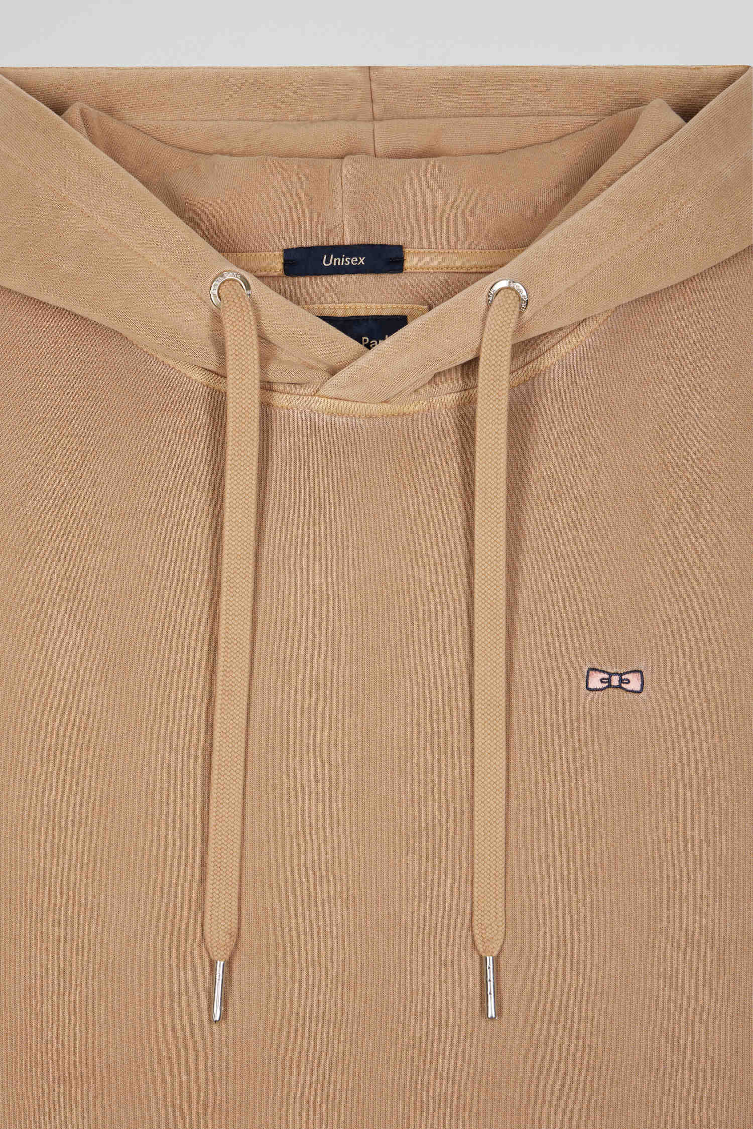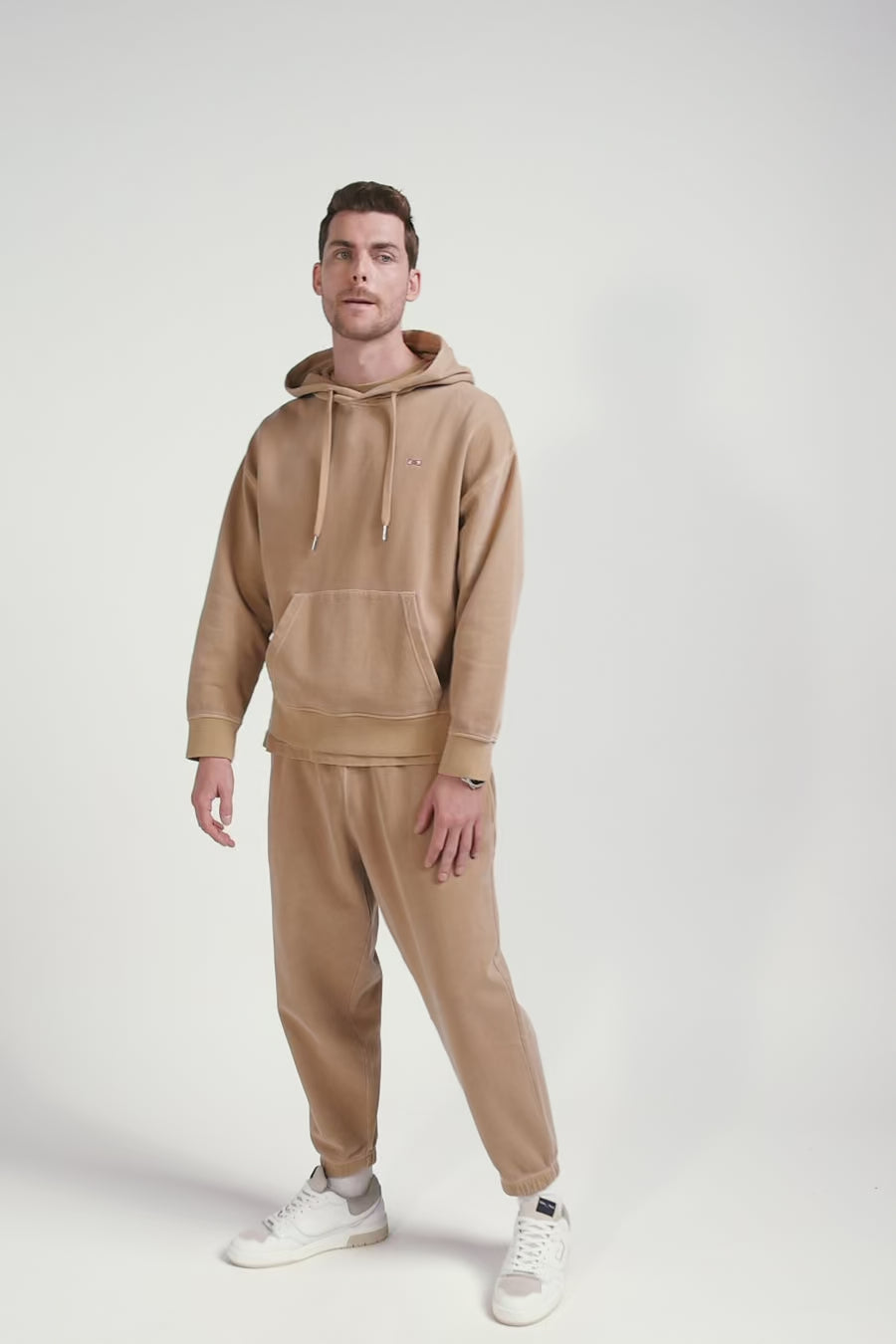 Purity and comfort perfectly define this hooded sweatshirt in overdyed cotton fleece for a more vintage washed effect. This everyday essential boasts a comfortable, trendy oversized cut that can be worn by both men and women, playing on its size and volume. This unisex sweatshirt is available in a wide range of pastel colors.