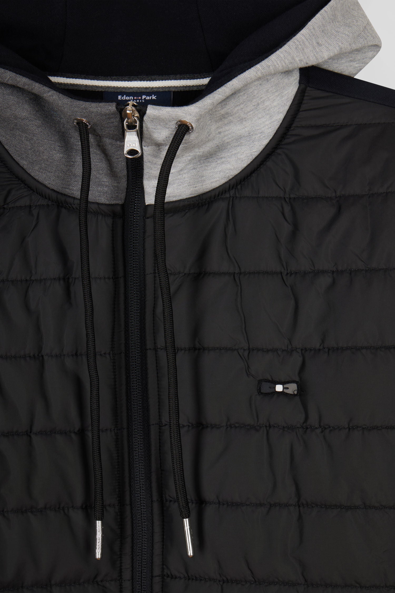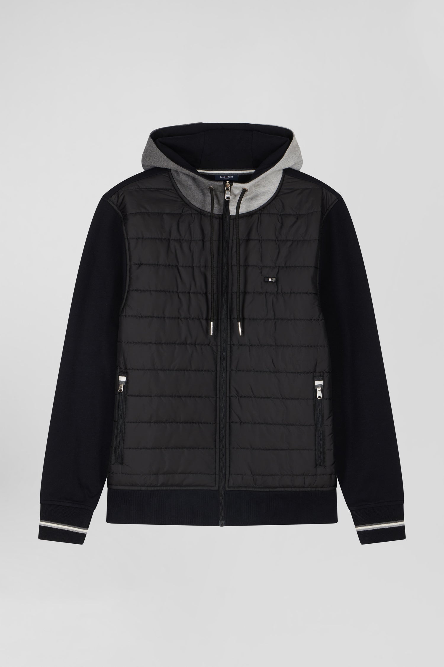 This bimaterial zip-up sweatshirt combines the warmth of fleece with the elegance of down-filled quilting, and can be worn as a sweatshirt or mid-season jacket. Perfect for a sporty-chic look, its regular fit and contrasting colors create a polished look.