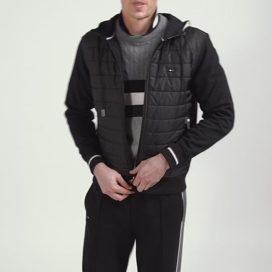 Regular black zipped bi-material sweatshirt with padded front