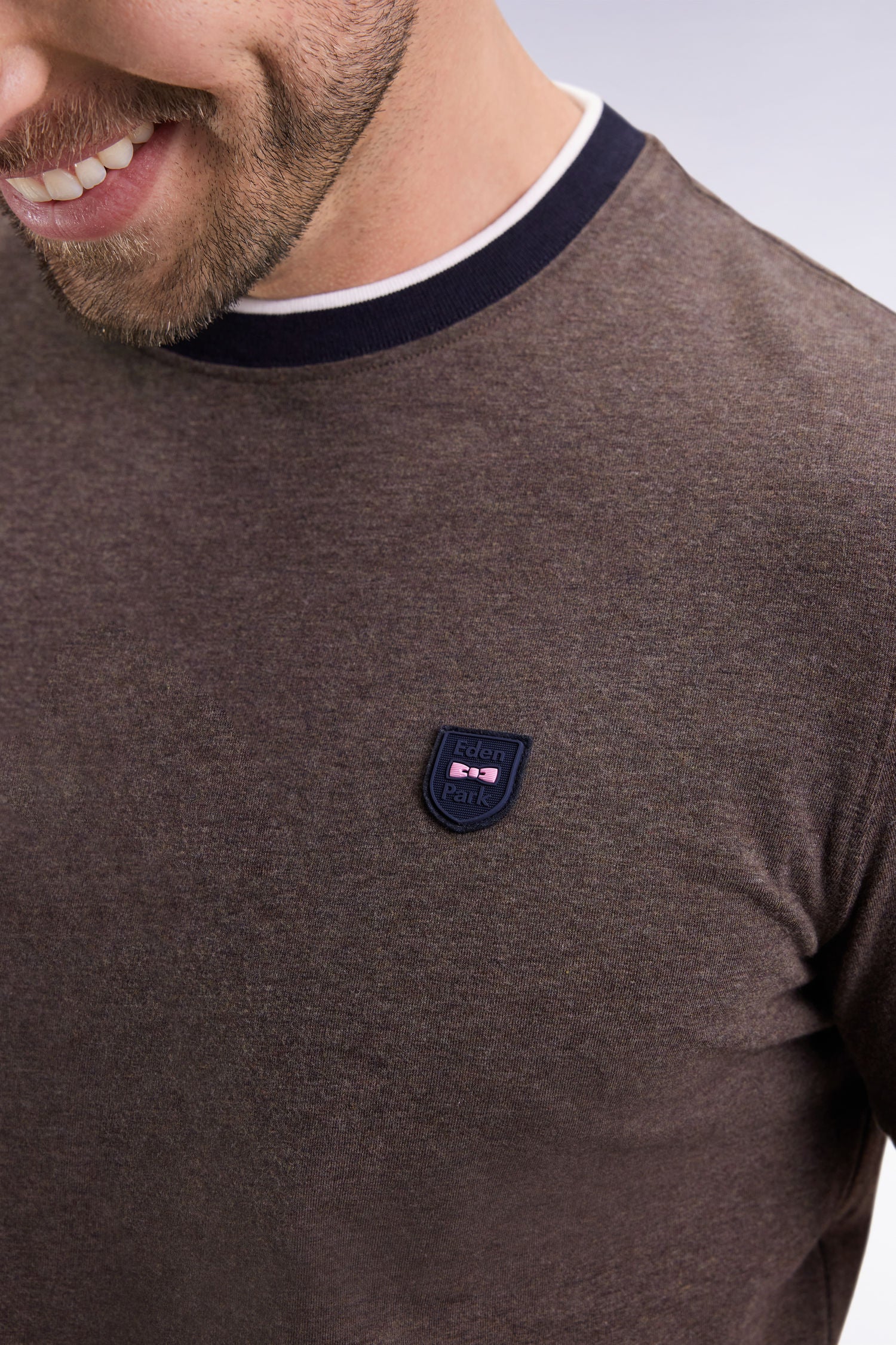 Short-sleeved T-shirt in brown stretch cotton, slim fit