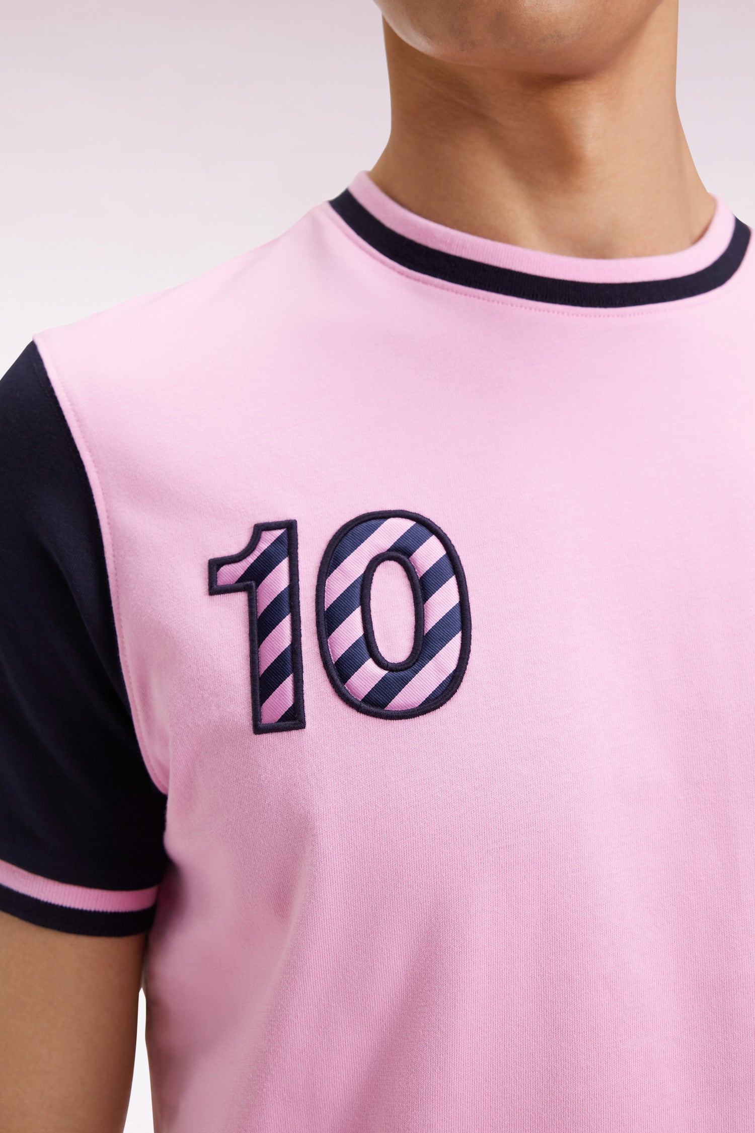 Two-tone short-sleeved navy cotton T-shirt with 10" embroidery