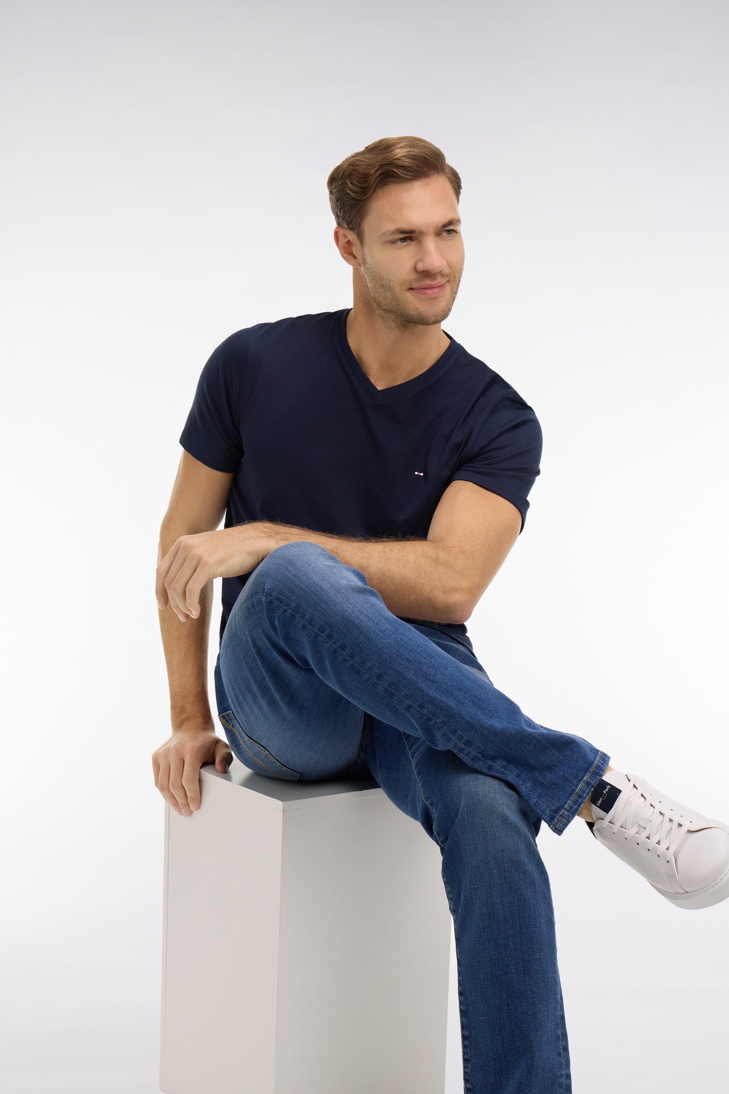 V-neck navy light pima cotton t-shirt