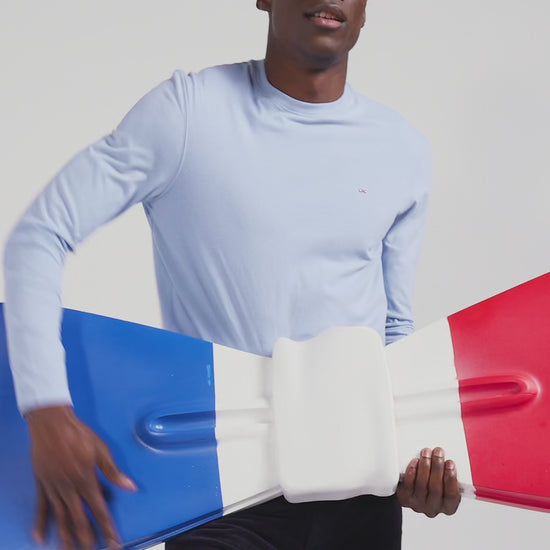 Regular sky blue long-sleeved cotton T-shirt with floral back patch