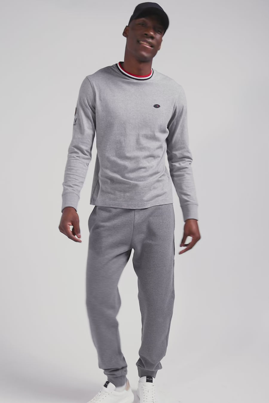 • Round collar with tri-colored ribbing