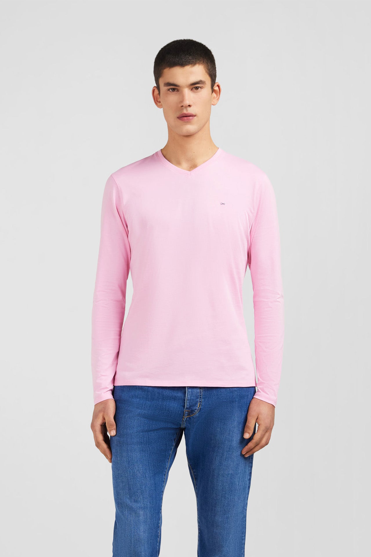 Long sleeved pink V neck t-shirt