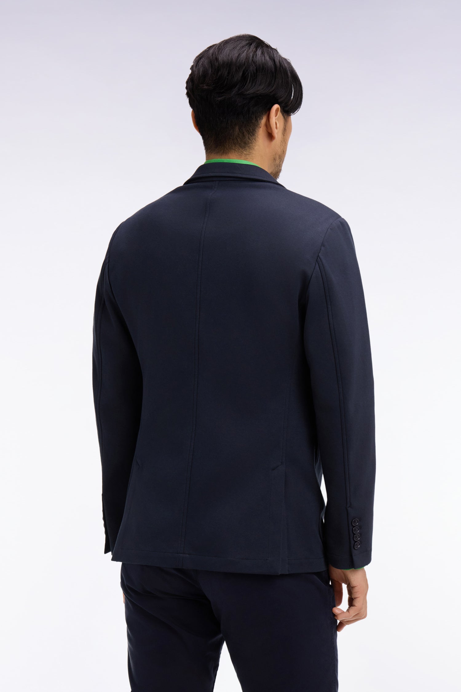 La veste de costume adopte une élégance décontractée en accord avec la philosophie sport chic Eden Park. Décliné dans un jersey de coton stretch kaki ou marine, ce blazer non doublé se dote de tous les codes propres au vestiaire tailleur, sans faire l'impasse sur le confort et la liberté de mouvement. Un bel essentiel qui saura vous accompagner de la semaine au week-end.