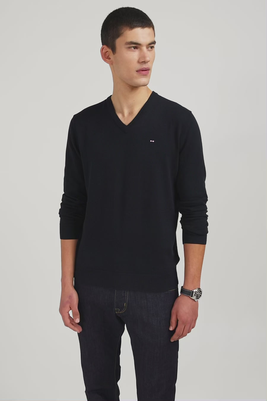 Follement élégant avec son col V raffiné et son tricot de coton de qualité, ce pull intemporel est l'atout style de votre saison. Enveloppez-vous tout l'hiver dans ce bel essentiel doux et chaud pour sublimer vos tenues préférées.