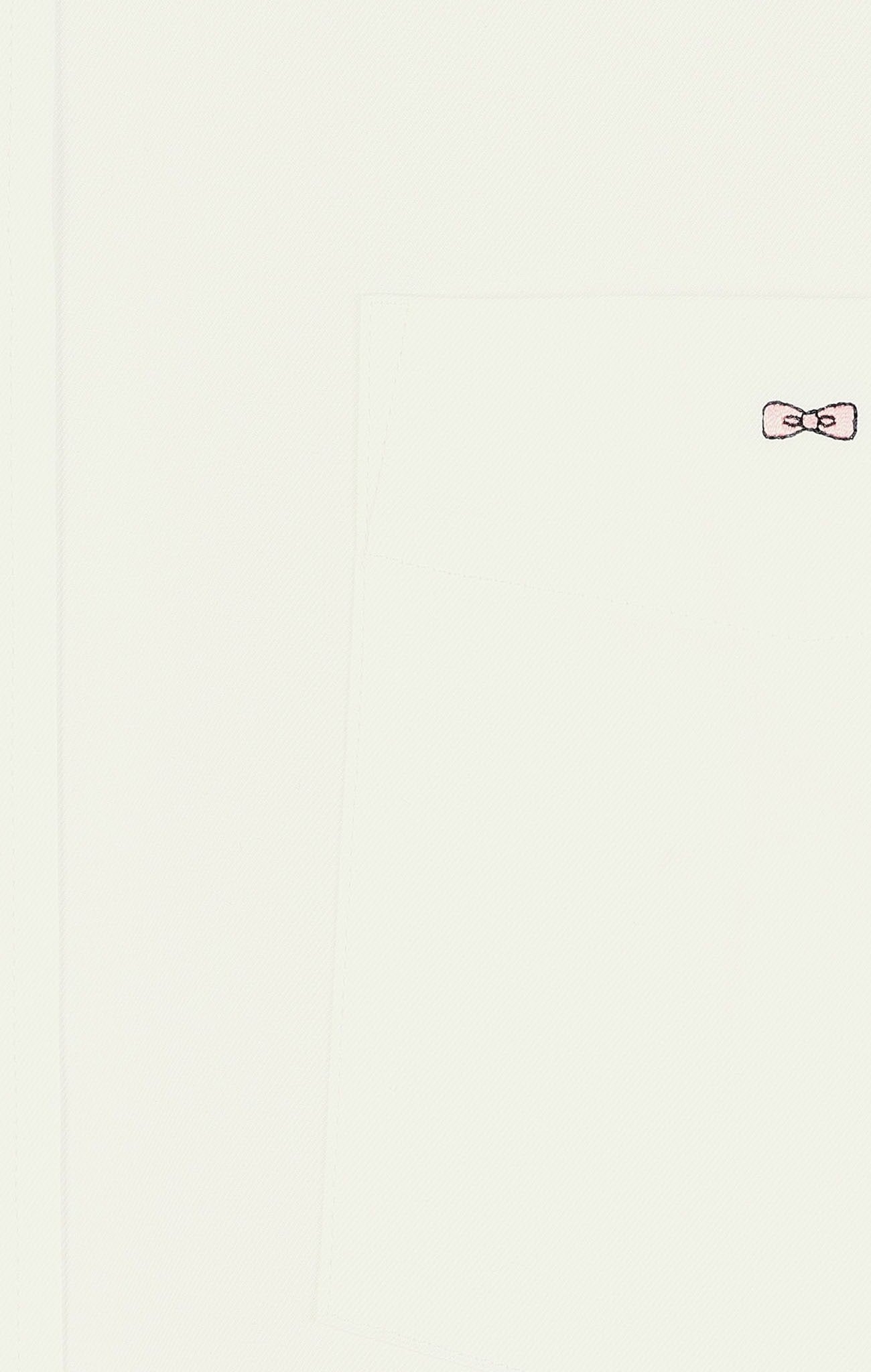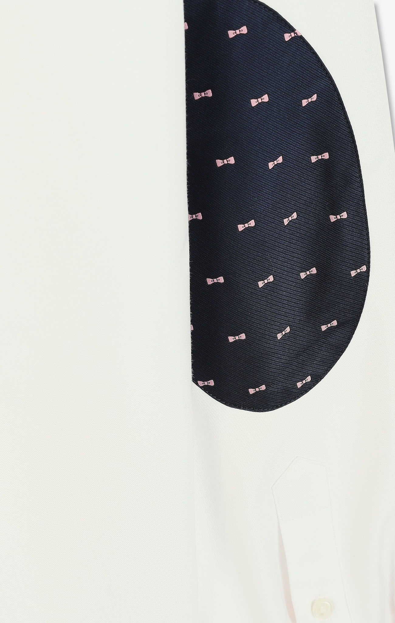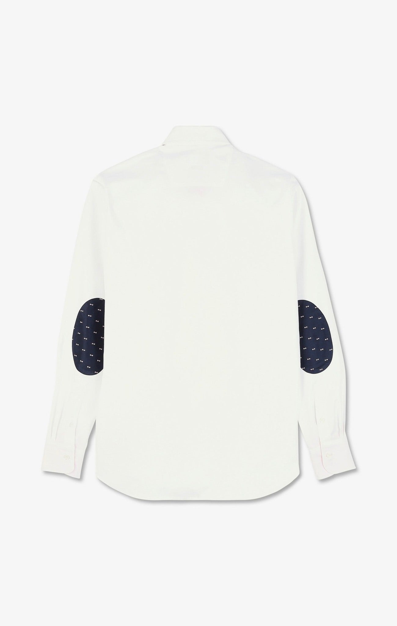Conçue en twill de coton, cette chemise unie affiche des coudières en tissu cravate imprimées de nœuds papillon. On distingue sur la poitrine une poche plaquée avec broderie nœud papillon