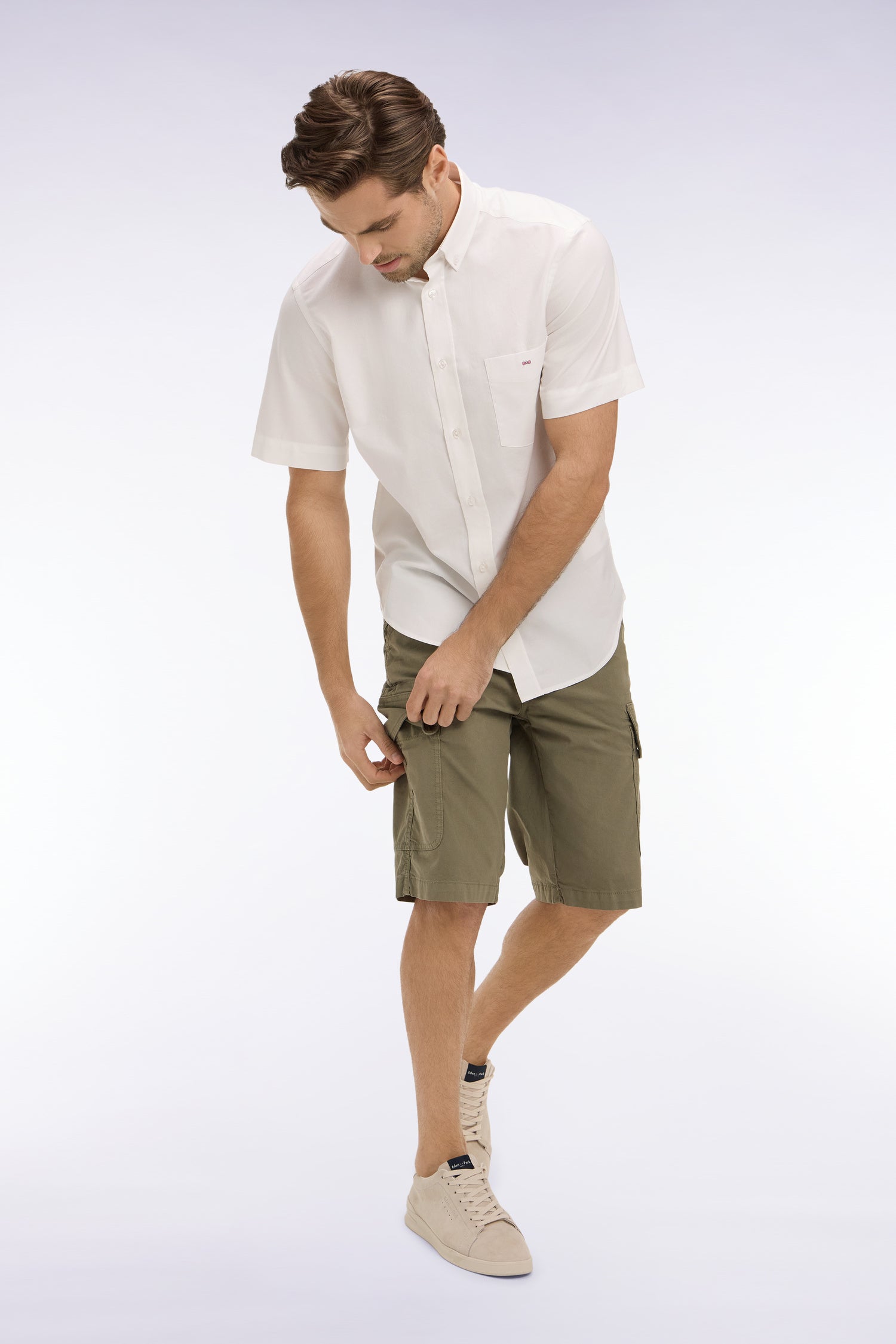 Le bermuda entre en jeu pour un match estival sous le signe du confort et du style. Offert dans une large palette de couleurs, des teintes intemporelles aux coloris de la saison pour s'accorder avec toutes les propositions mode de cette collection, ce bermuda en gabardine de coton stretch s'inspire du chino dont il conserve les finitions essentielles. Poches passepoilées, poches dos boutonnées et boutons siglés : rien n'est laissé au hasard.