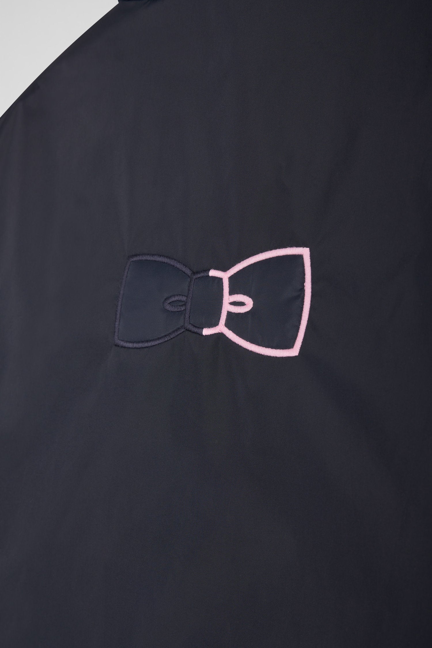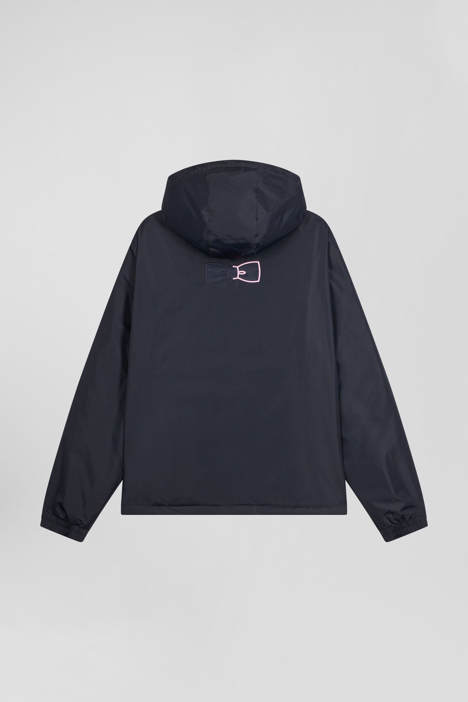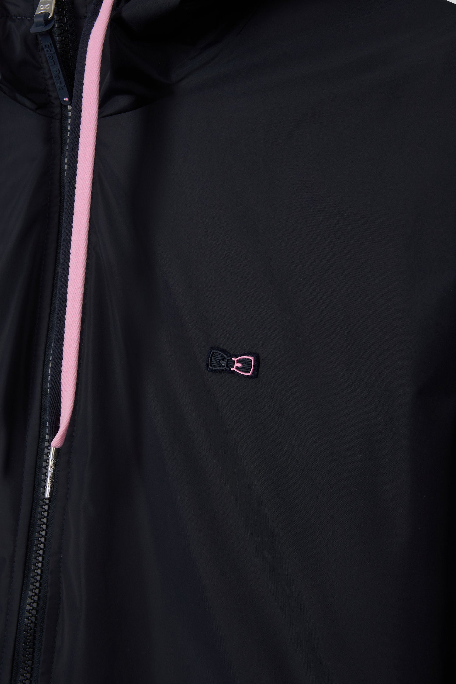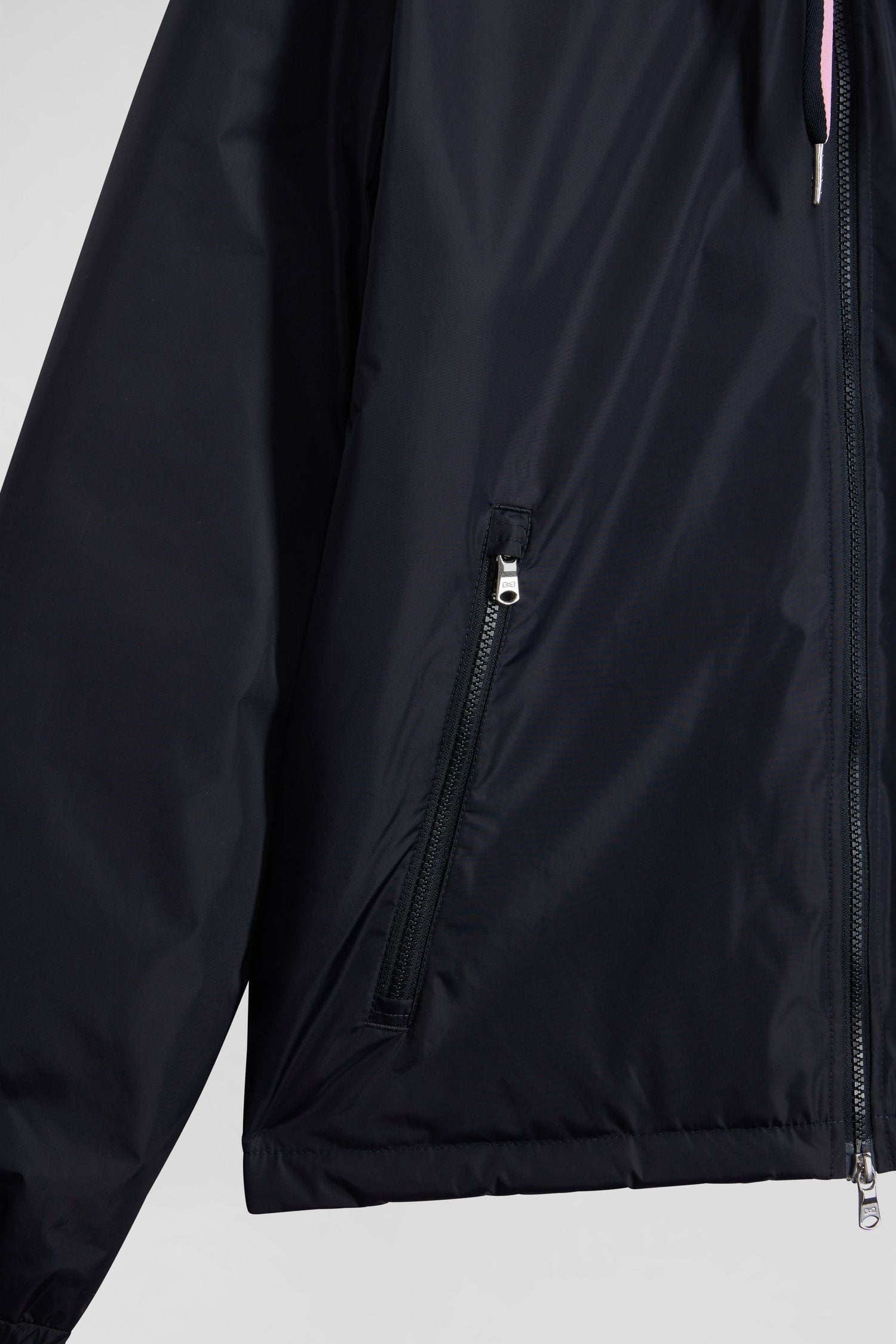Affrontez les éléments avec ce coupe-vent en nylon, doté d'une capuche à lien de serrage bicolore et embouts siglés pour un ajustement parfait. À l'intérieur, une doublure en nylon matelassée offre chaleur et confort. La fermeture est assurée par un zip double curseur, et les poches zippées extérieures, comme les poches intérieures à scratch, promettent sécurité et commodité. Le dos se pare d'une broderie nœud papillon tandis que le badge poitrine en feutrine douce est brodé du nœud emblématique de notre Maison pour une signature inimitable.