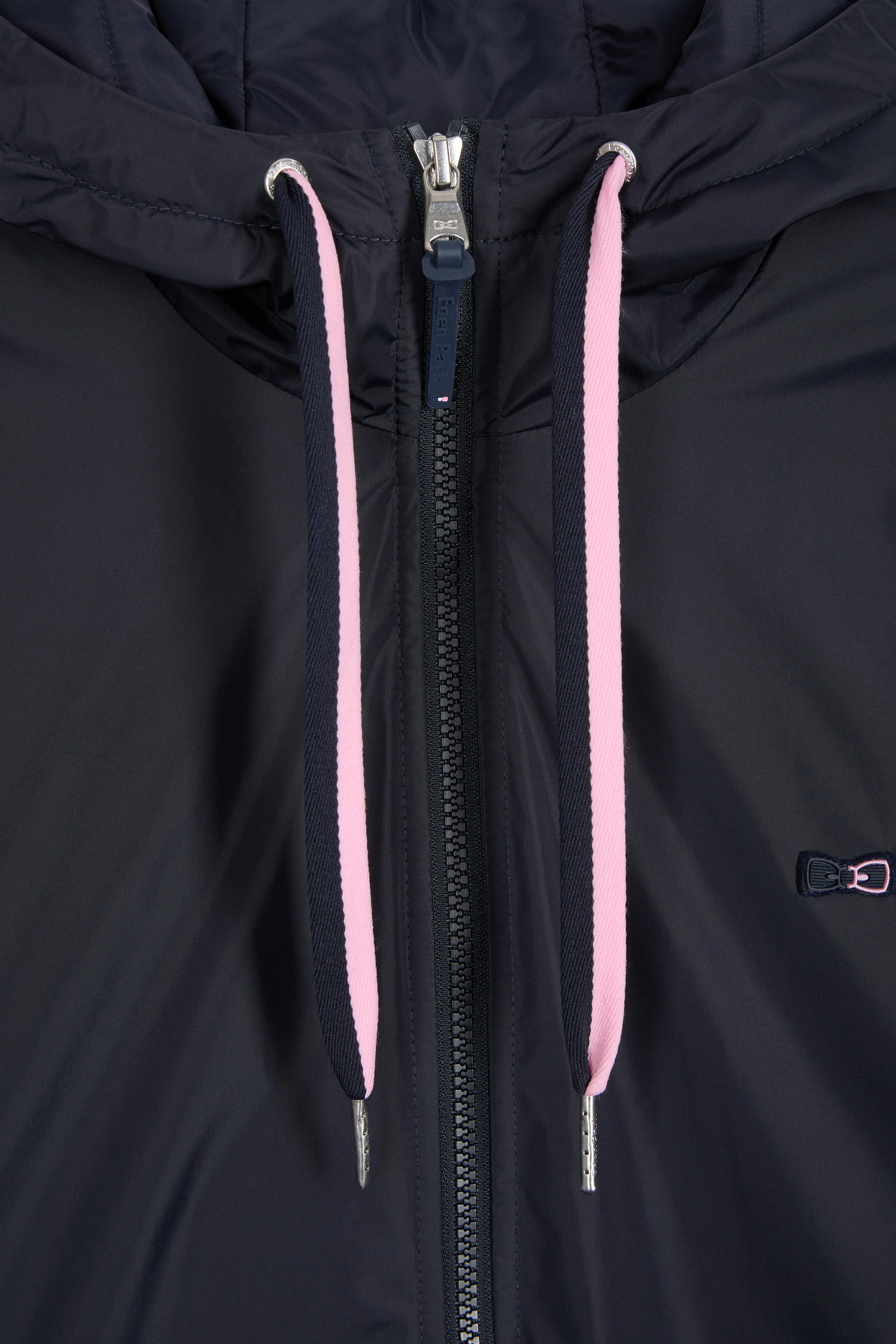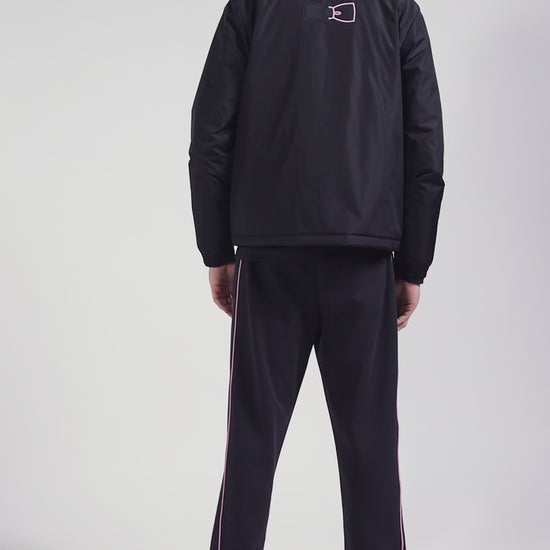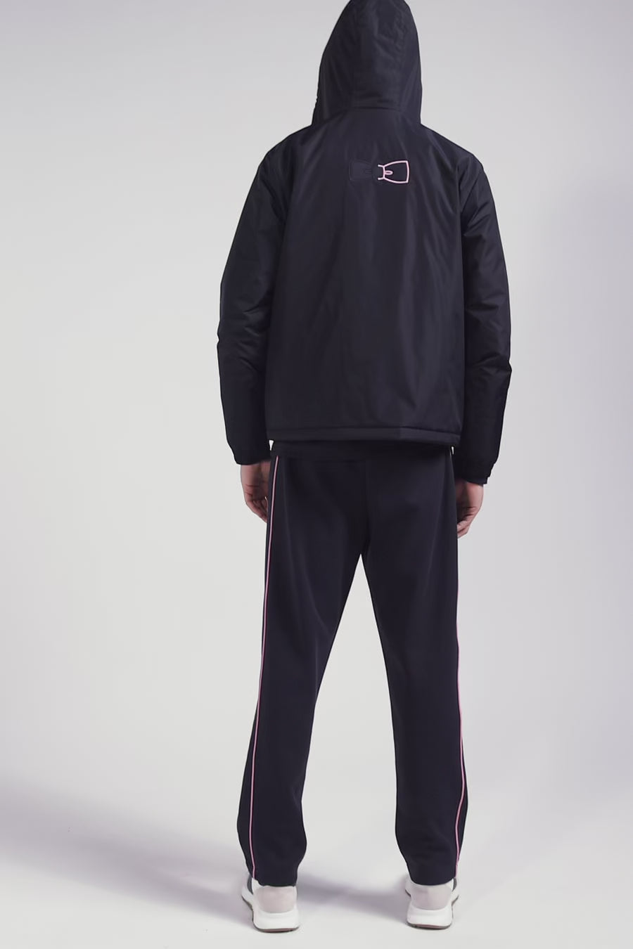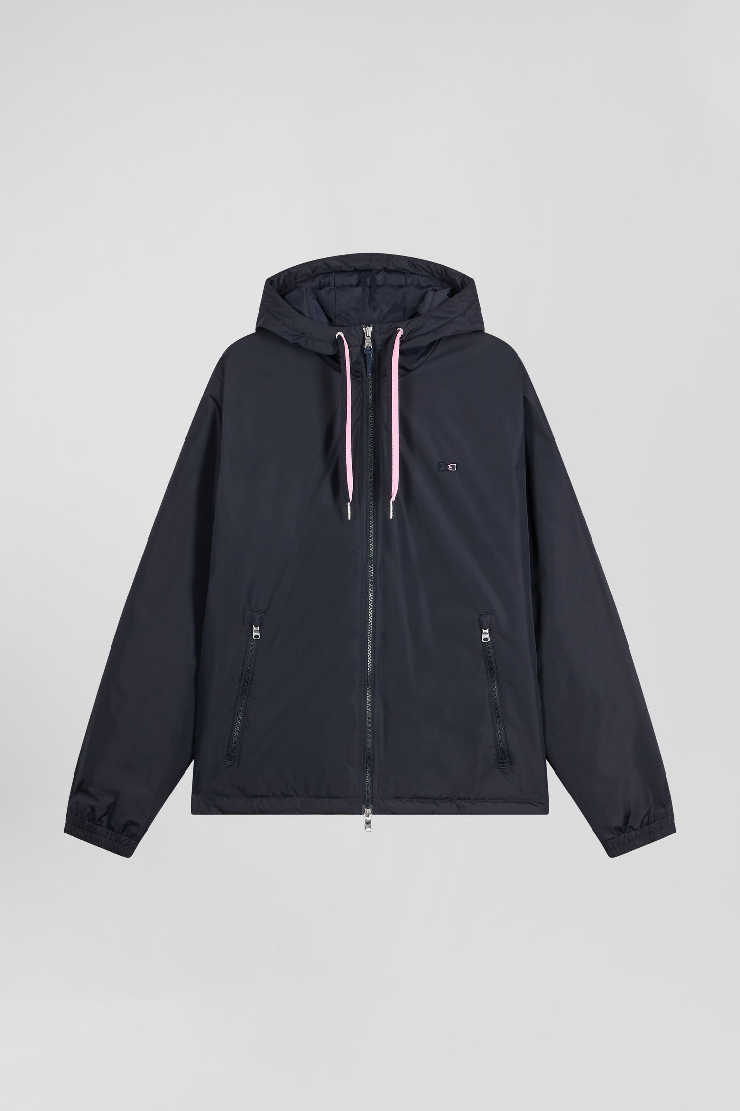 Affrontez les éléments avec ce coupe-vent en nylon, doté d'une capuche à lien de serrage bicolore et embouts siglés pour un ajustement parfait. À l'intérieur, une doublure en nylon matelassée offre chaleur et confort. La fermeture est assurée par un zip double curseur, et les poches zippées extérieures, comme les poches intérieures à scratch, promettent sécurité et commodité. Le dos se pare d'une broderie nœud papillon tandis que le badge poitrine en feutrine douce est brodé du nœud emblématique de notre Maison pour une signature inimitable.