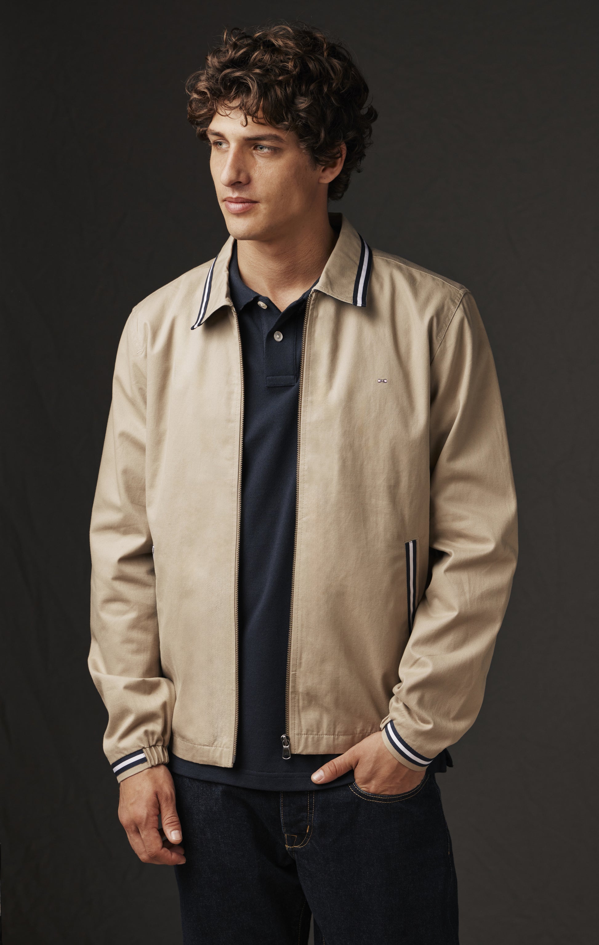 Ce blouson zippé à col classique en coton léger est idéal pour la mi-saison. Son coloris beige s'associe aisément à votre vestiaire tandis que les galons rayés, cousus main par notre atelier sur ce blouson provenant d'une collection d'archive, lui apportent une touche graphique aux influences athlétiques. Bordures de manches, entrées de poches et contours du col sont élégamment mis en valeur par ce galon marine et blanc prélevé parmi nos stocks dormants. Pièce unique créée en édition limitée pour notre capsule Pap'Atelier, ce blouson upcyclé est disponible dans une taille médium, uniquement sur notre site internet et pour une durée limitée. Une pièce tendance et intemporelle à la fois qui vous assure de vous démarquer, quelle que soit l'occasion.