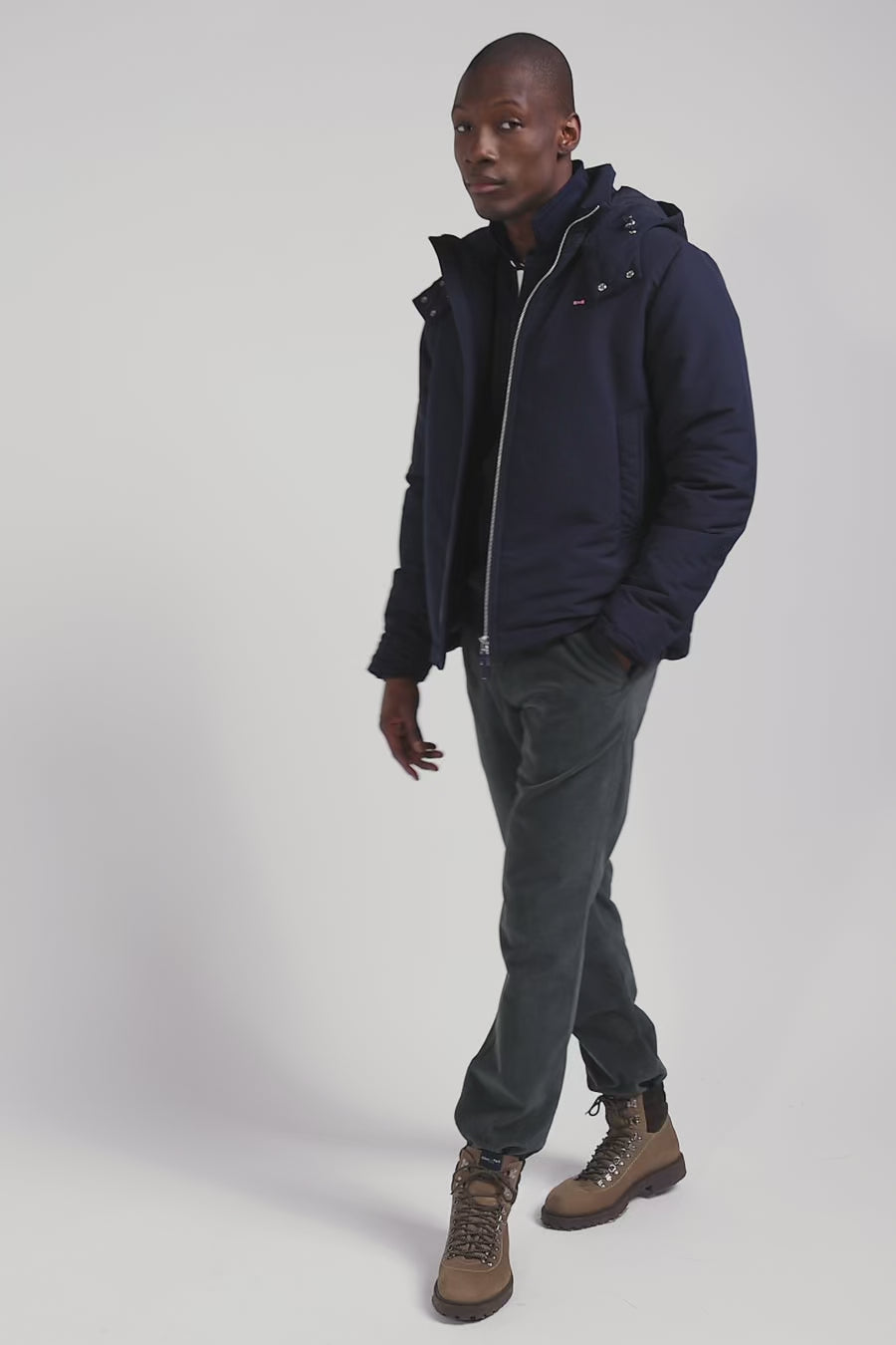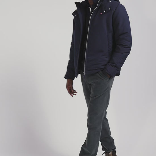 Blouson zippé à capuche bleu marine