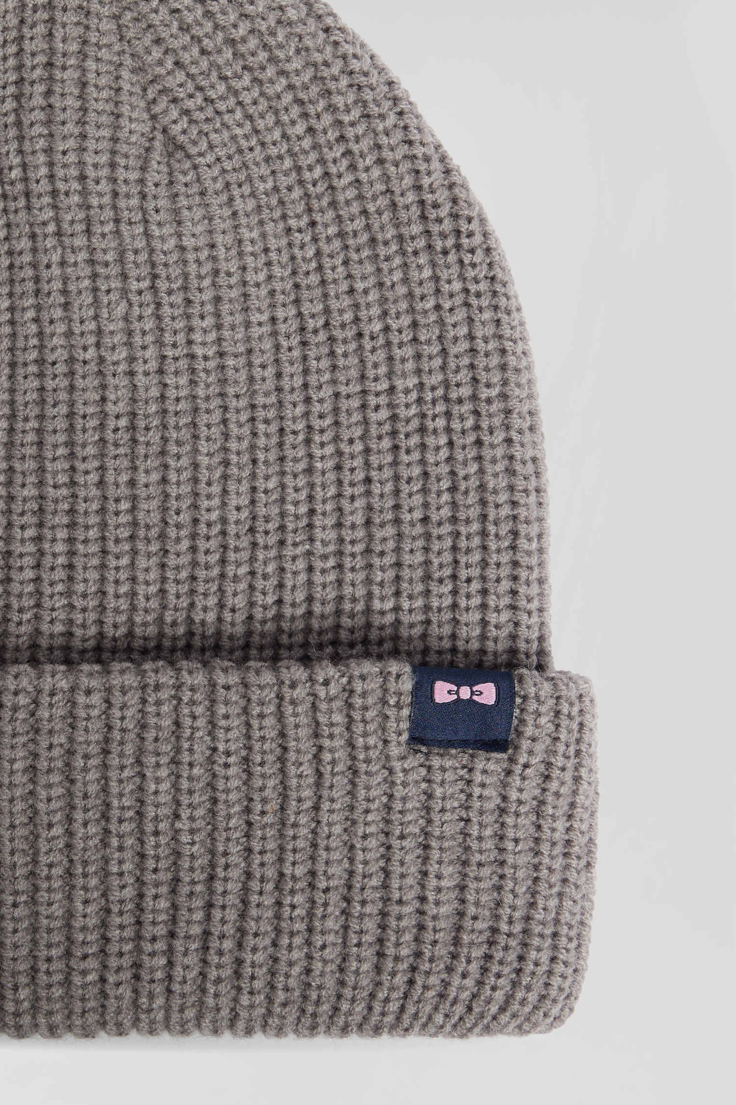 Bonnet en maille gris chiné broderie nœud papillon