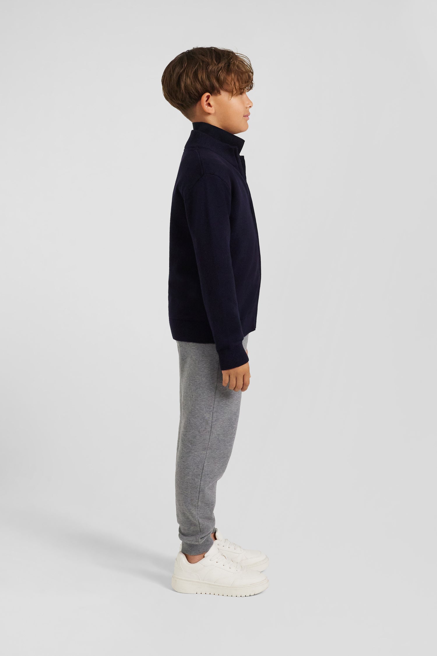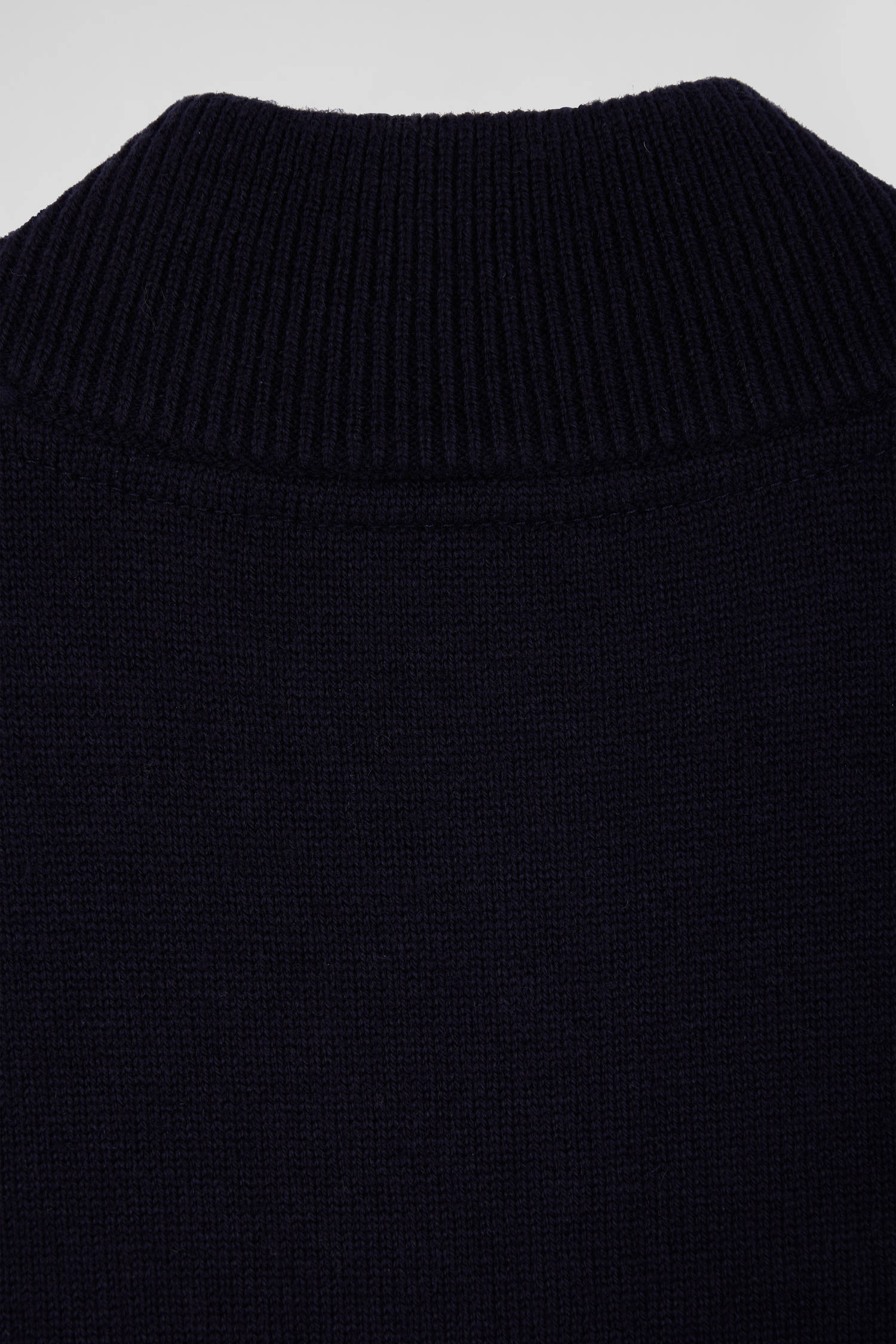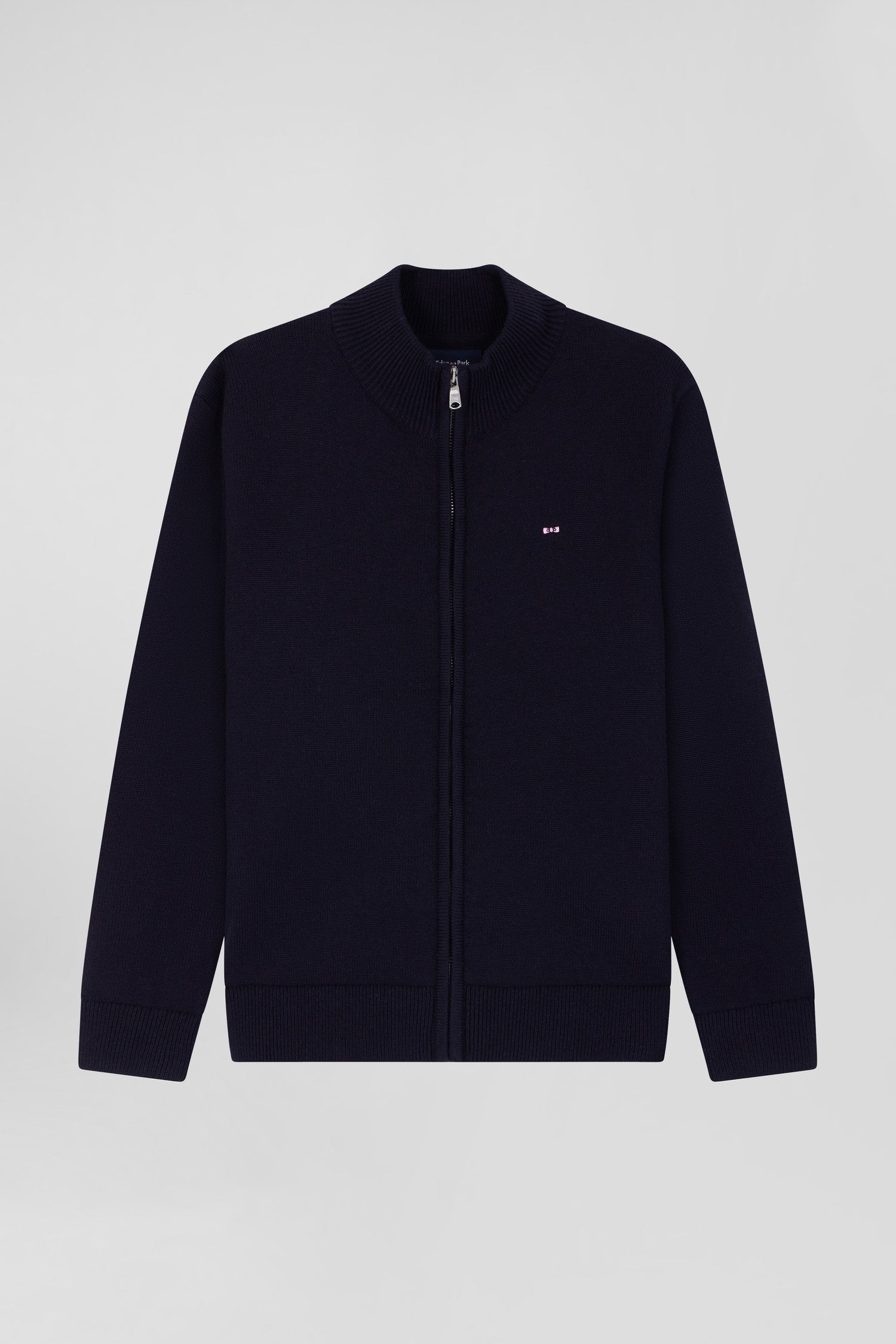 Cardigan zippé à col montant en laine et coton marine coupe Regular
