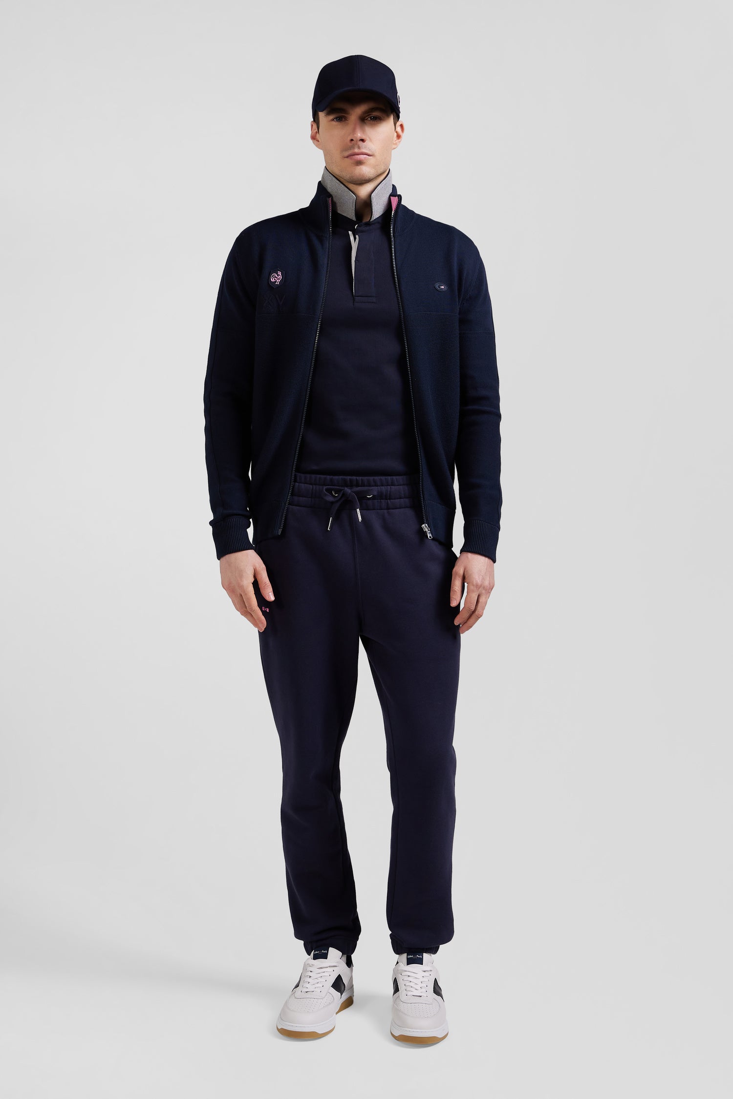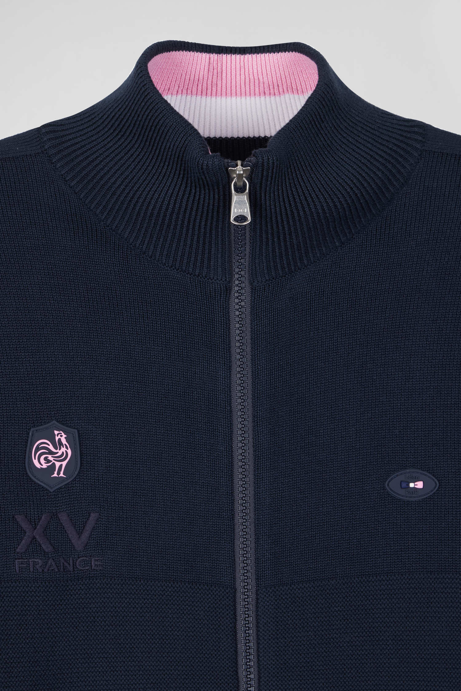 Cardigan zippé en coton bleu marine coupe Regular badge gomme détails XV de France tricolore