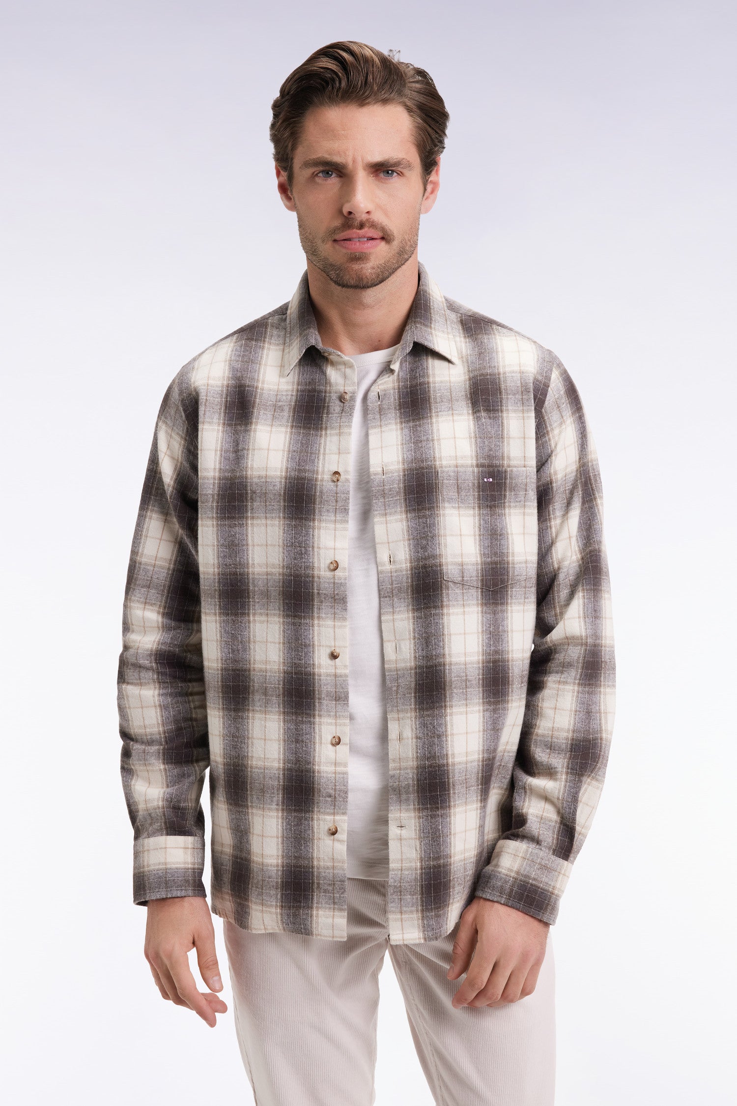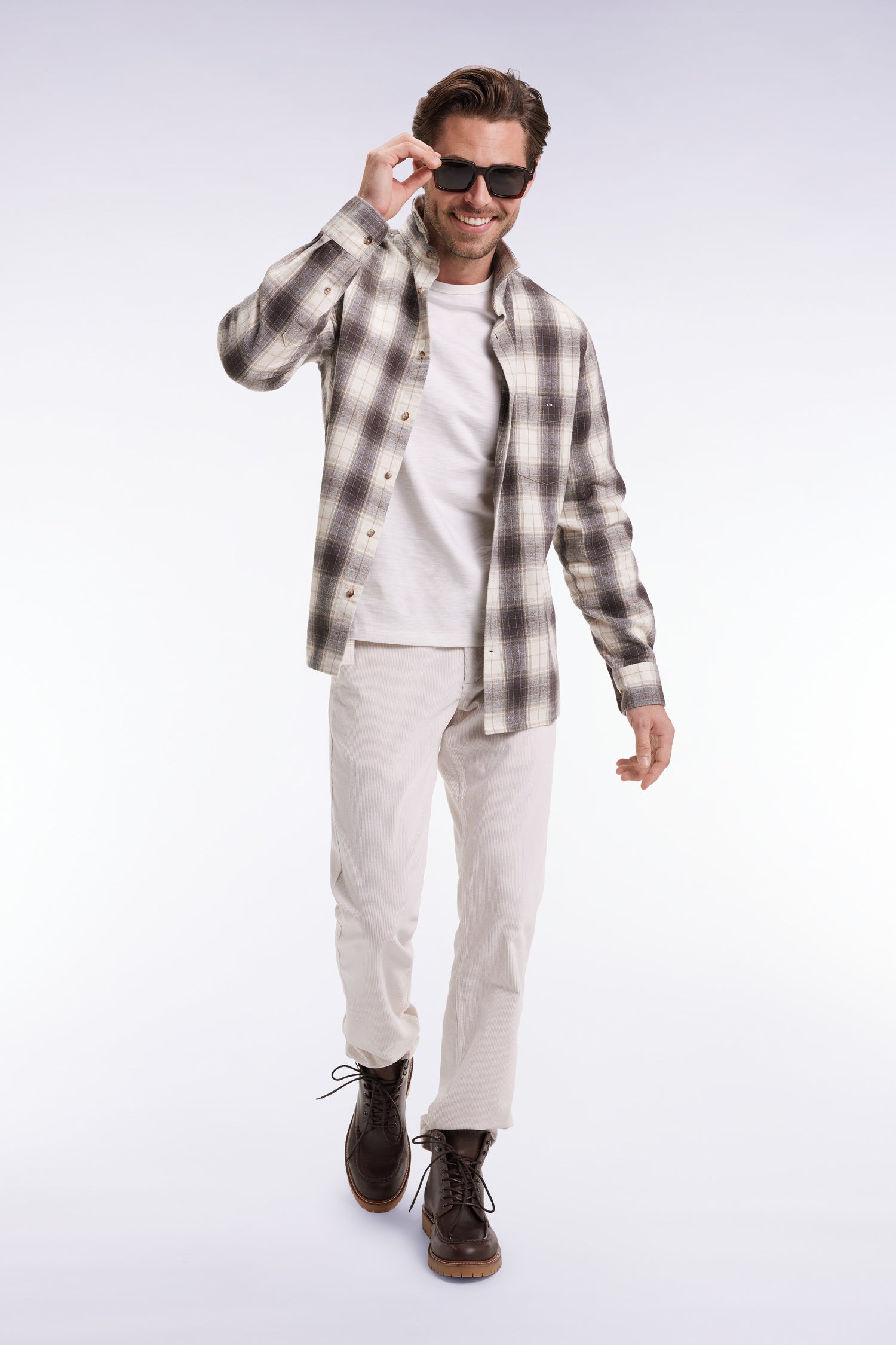 Cette chemise masculine en tissu japonais 100% coton à motif carreaux conjugue authenticité et modernité. Déclinée dans une coupe droite regular, elle affirme son caractère par son motif graphique travaillé dans des teintes raffinées faciles à associer à vos favoris. Le nœud papillon brodé sur la poche poitrine signe discrètement son appartenance au vestiaire Eden Park. Sa coupe minimaliste à pant droit en fait une surchemise idéale pour parfaire vos jeux de superposition au cœur de la saison automne - hiver. Un modèle alliant le confort à un certain sens de l'élégance brute