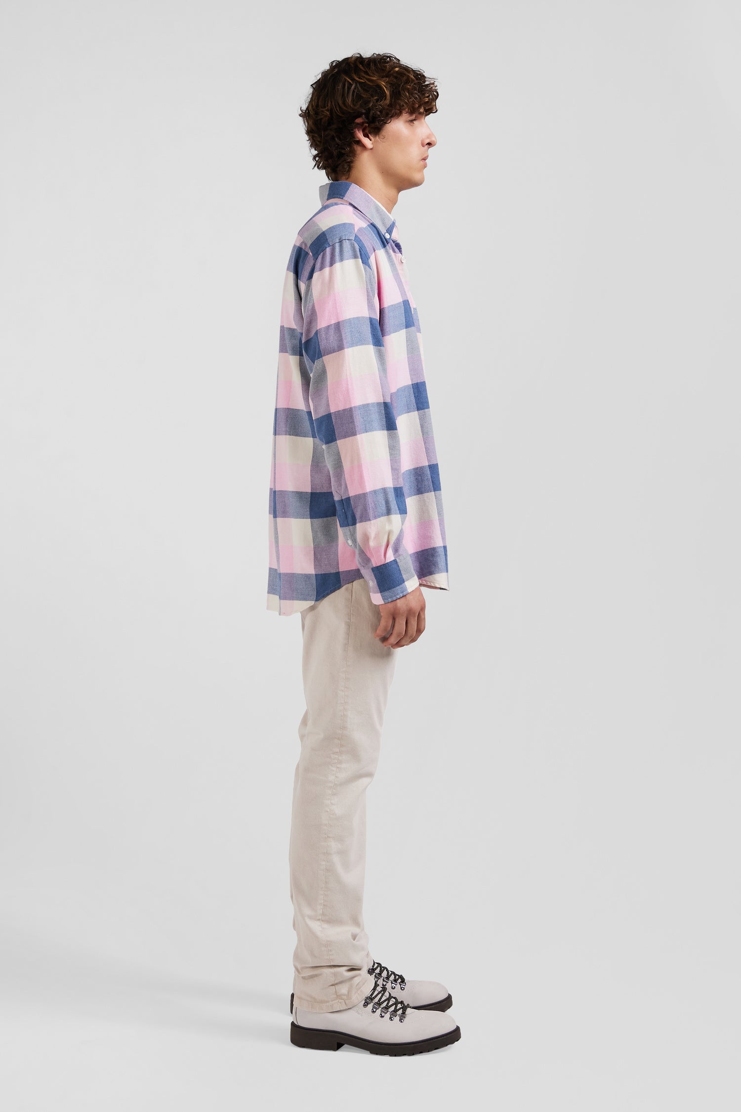 En gris ou en rose, découvrez le charme décontracté de notre chemise à carreaux en coton doux, un essentiel du vestiaire automne-hiver. Avec sa coupe droite et son col à pointes boutonnées, cette chemise homme à poche plaquée offre confort et élégance. Le nœud papillon rose brodé sur la poitrine ajoute une note distinctive, parfaite pour une surchemise tendance et décontractée.
