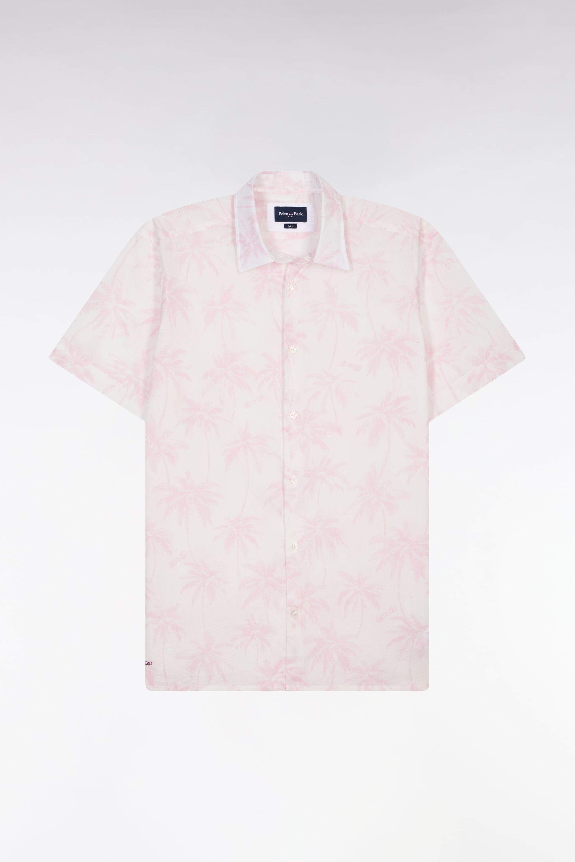 Chemise à manches courtes en coton rose imprimé palmiers coupe slim