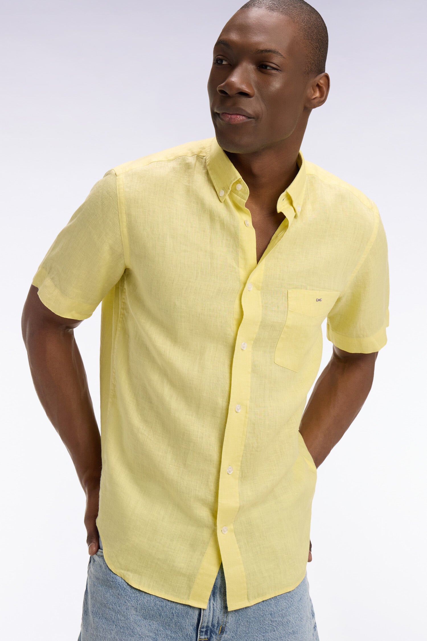 Chemise à manches courtes en lin jaune