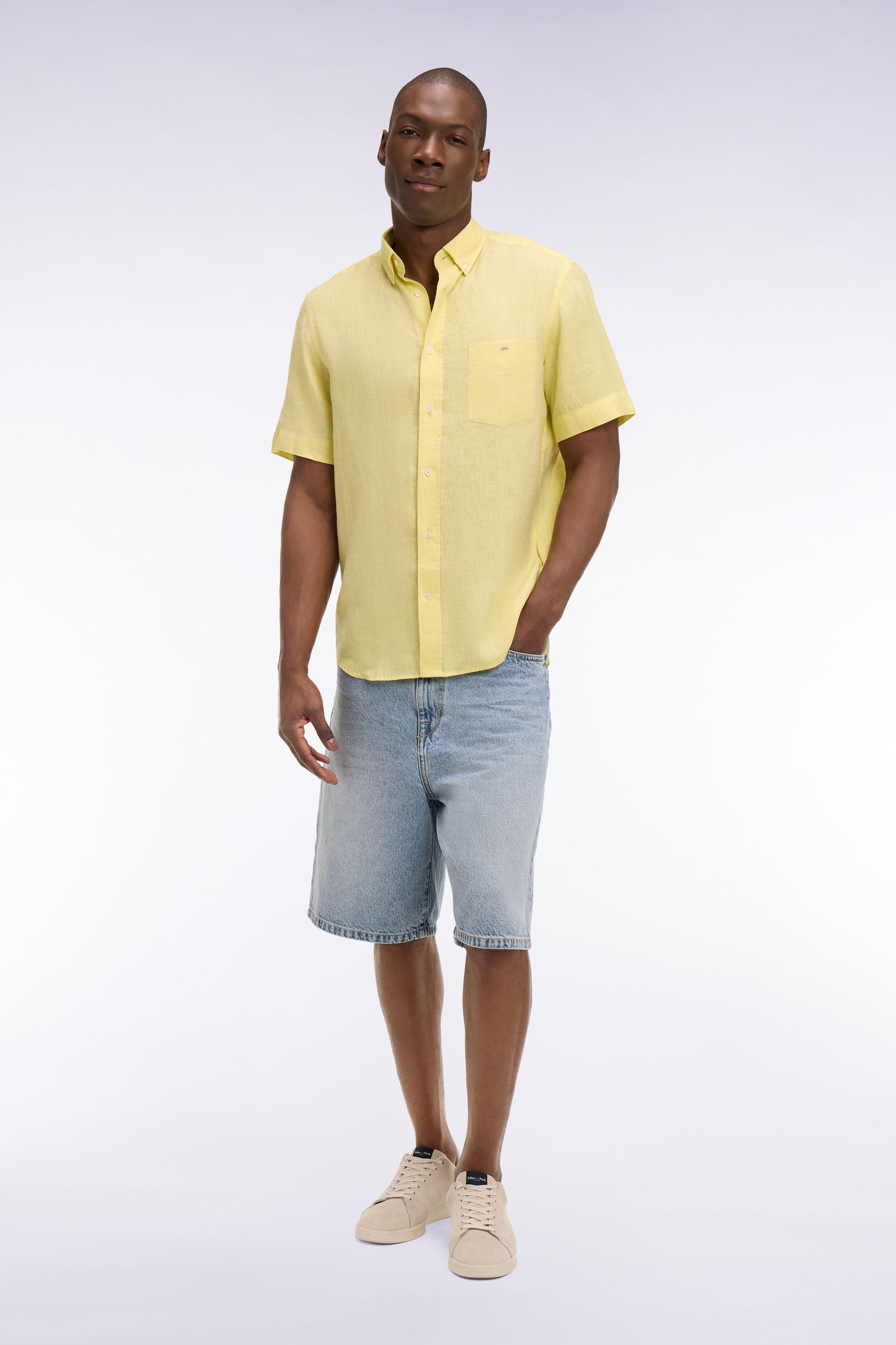 Cette chemise à manches courtes en lin pur s’impose comme l’incontournable de la saison été. Légère, respirante et naturellement texturée, cette chemise masculine offre un confort incomparable lorsque les températures s’élèvent. Sa coupe droite à pans arrondis et son col à pointes libres lui confèrent une allure décontractée mais toujours soignée, idéale pour passer avec aisance de la ville aux vacances. Déclinée dans une large palette de coloris, des tons naturels aux nuances plus lumineuses, cet indispensable se coordonne aisément à un chino léger comme à un short en toile. Ses finitions discrètes et sa matière noble, font de cette chemise en lin le pilier d'un vestiaire estival, frais et élégant.