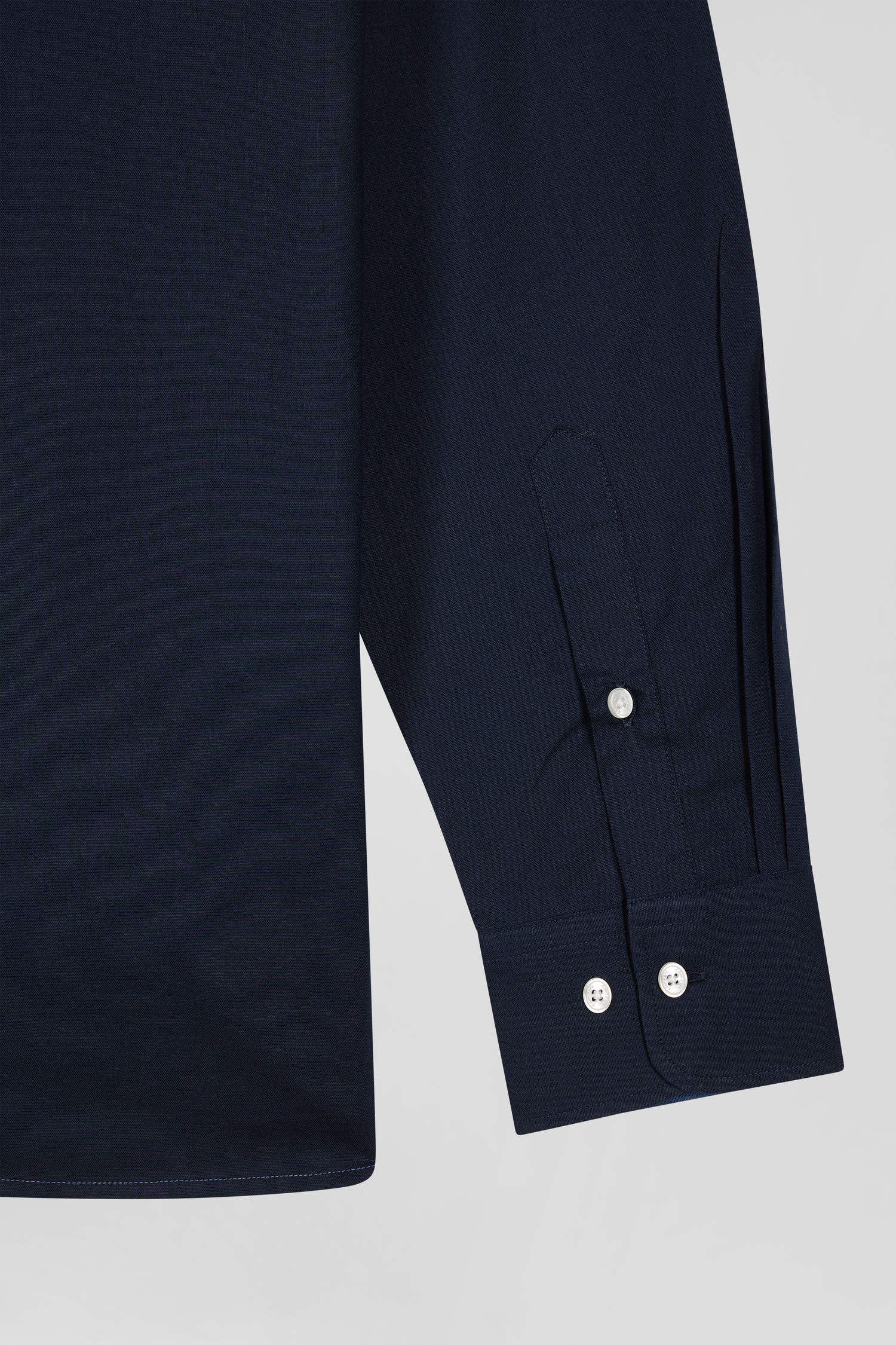 Pour cette chemise homme toute en nuances de bleu marine et bleu foncé, nous avons choisi un coton pin point, reconnu pour son tissage dense qui offre une texture plus prononcée et une robustesse supérieure à celle de la popeline, tout en assurant confort et liberté de mouvement. Le dos de la chemise se distingue par une broderie reflétant l'héritage sportif d'Eden Park. Les détails tricolores sur la patte de boutonnage, écho à la broderie du nœud papillon lui confèrent une élégance sportive, incarnant l'esprit French Flair.