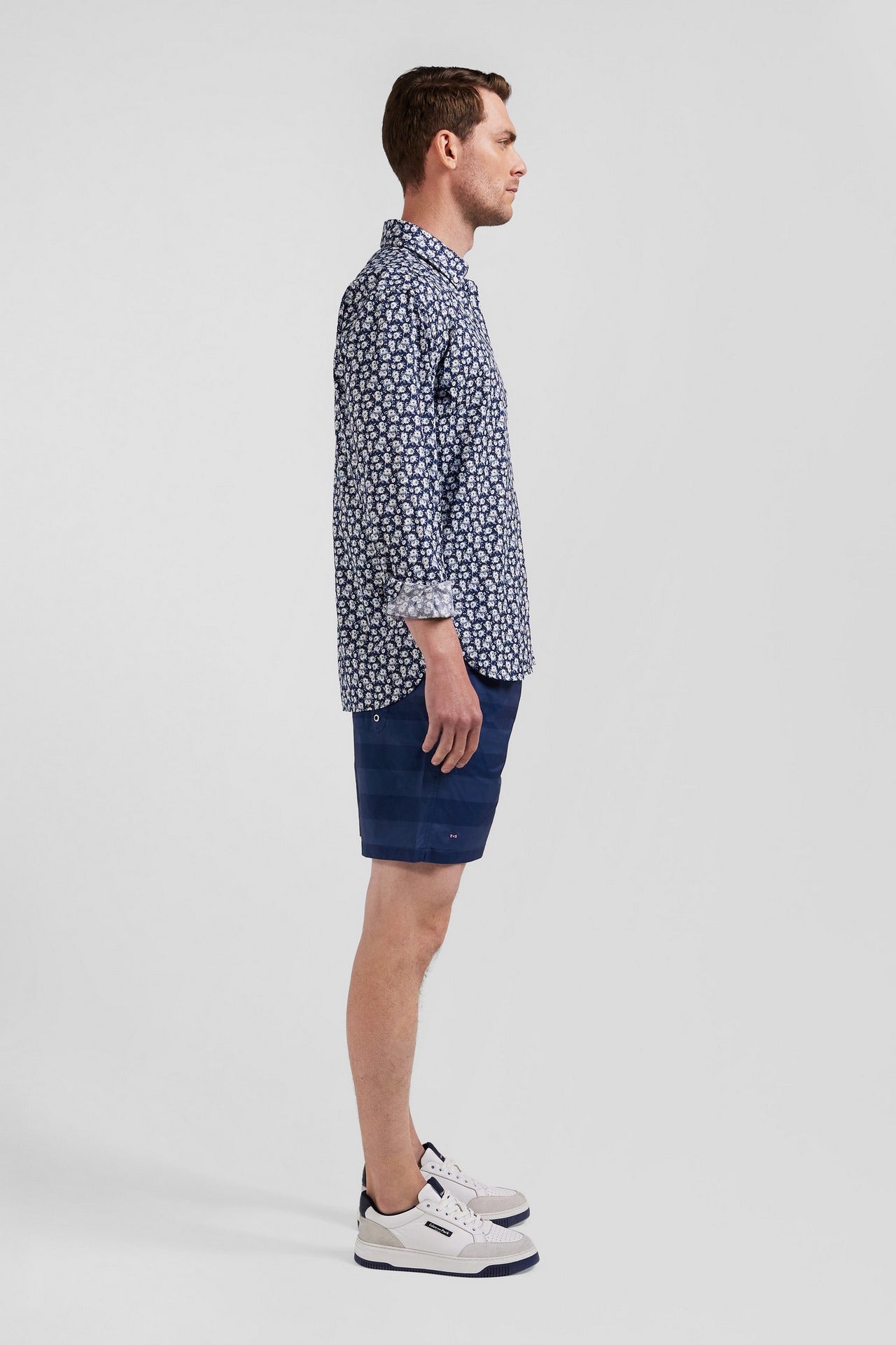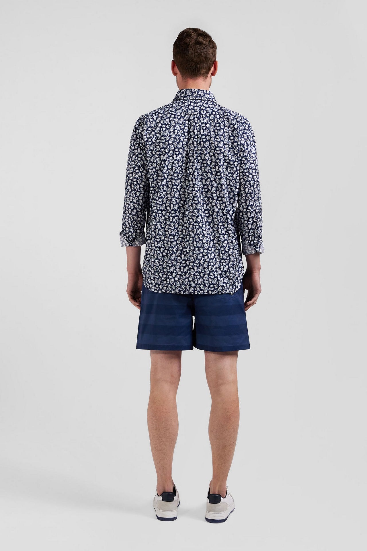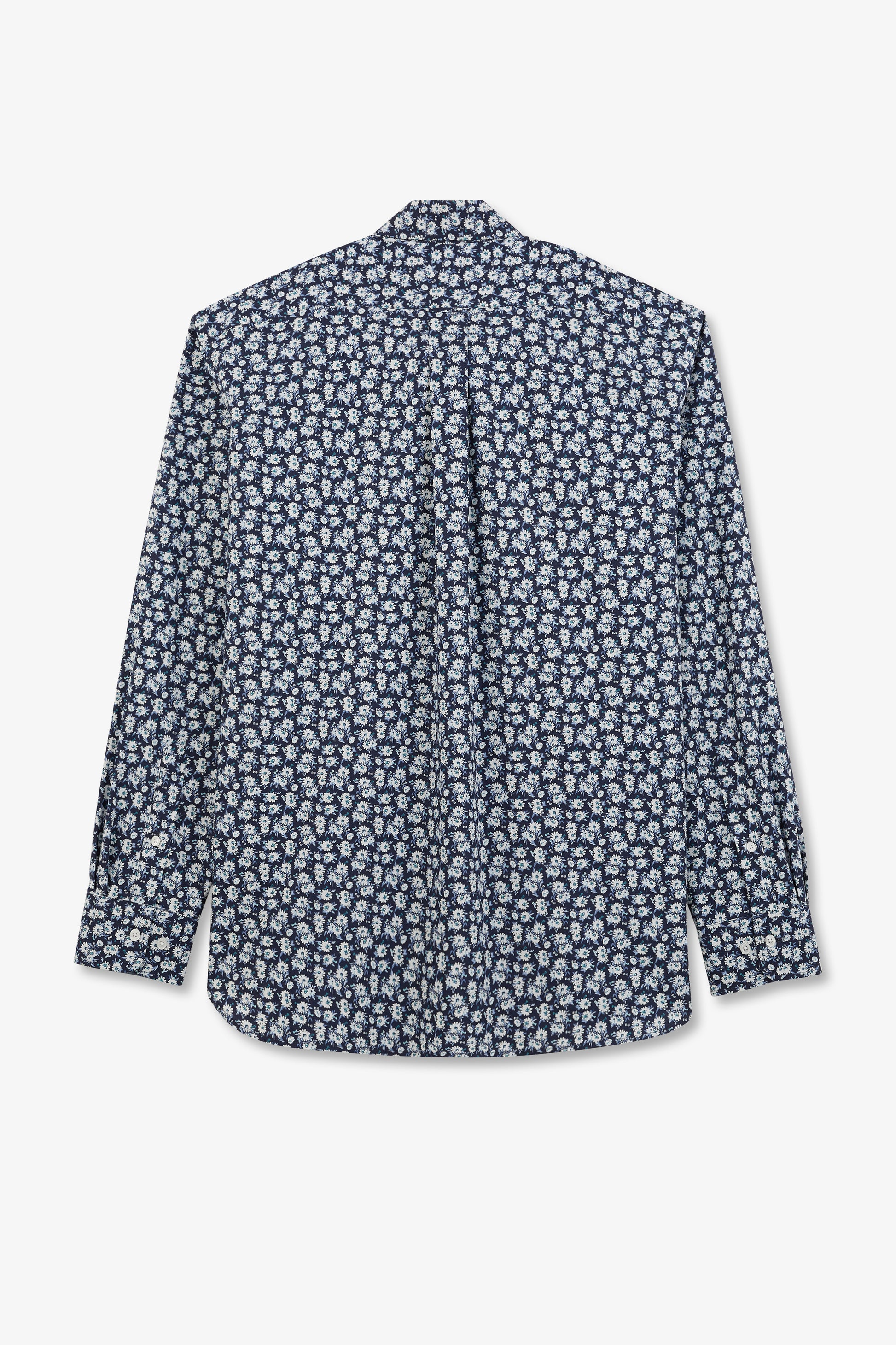 Cette chemise imprimée exclusif fleurs en popeline est dotée d'une poche plaquée à la poitrine avec le logo noeud papillon brodé et d'un col à pointes boutonnées