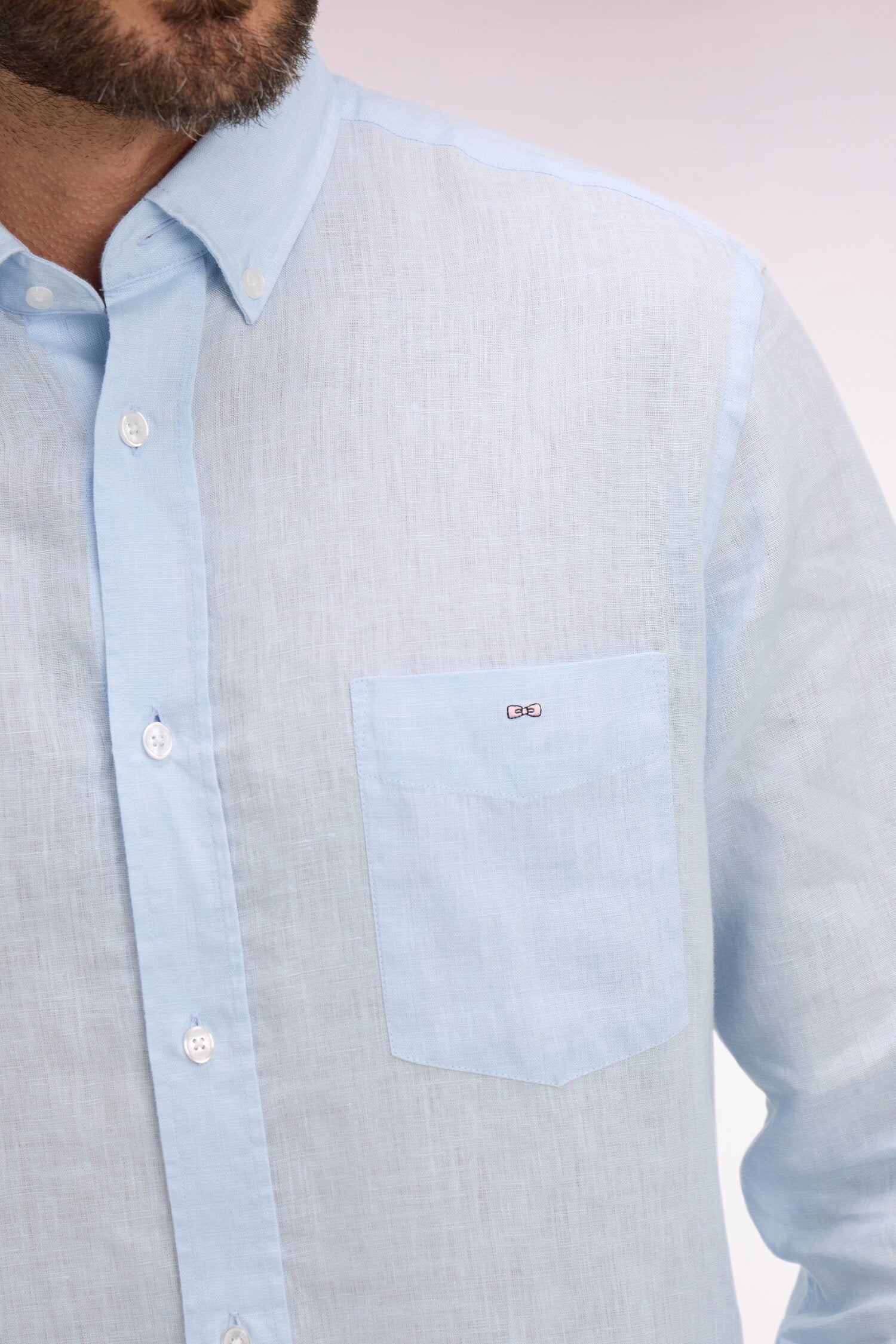 Cette chemise à manches courtes en lin pur s’impose comme un incontournable de la saison estivale. Naturellement respirante, légère et élégante, elle offre un confort incomparable lorsque les températures montent. Sa coupe regular à bas arrondi et son col à pointes boutonnées assurent une silhouette nette et décontractée. Dotée d’une poche poitrine ornée de notre iconique broderie nœud papillon, elle affiche un style épuré, fidèle à l’ADN sport chic de la Maison. Déclinée en une grande palette de coloris, elle se coordonne facilement à un chino clair comme à un bermuda. Un essentiel polyvalent, pensé pour accompagner aussi bien vos journées en ville que vos escapades estivales. Cette chemise se décline dans sa version manches courtes.