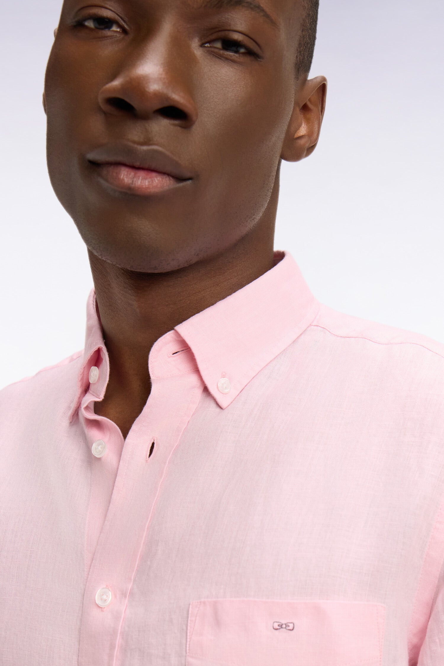 Chemise droite en lin rose clair