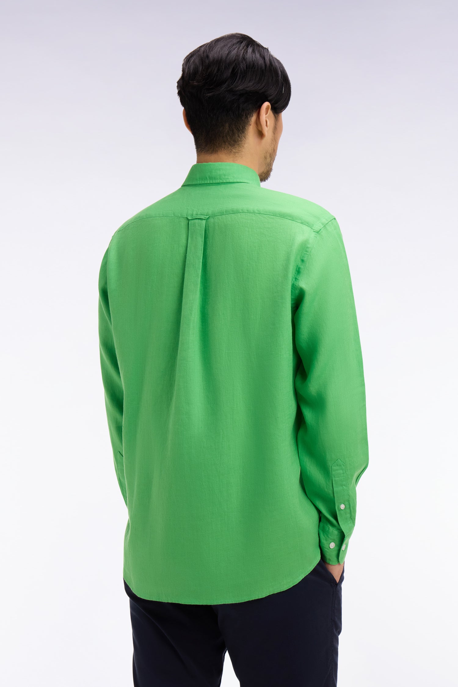 Cette chemise à manches courtes en lin pur s’impose comme un incontournable de la saison estivale. Naturellement respirante, légère et élégante, elle offre un confort incomparable lorsque les températures montent. Sa coupe regular à bas arrondi et son col à pointes boutonnées assurent une silhouette nette et décontractée. Dotée d’une poche poitrine ornée de notre iconique broderie nœud papillon, elle affiche un style épuré, fidèle à l’ADN sport chic de la Maison. Déclinée en une grande palette de coloris, elle se coordonne facilement à un chino clair comme à un bermuda. Un essentiel polyvalent, pensé pour accompagner aussi bien vos journées en ville que vos escapades estivales. Cette chemise se décline dans sa version manches courtes.