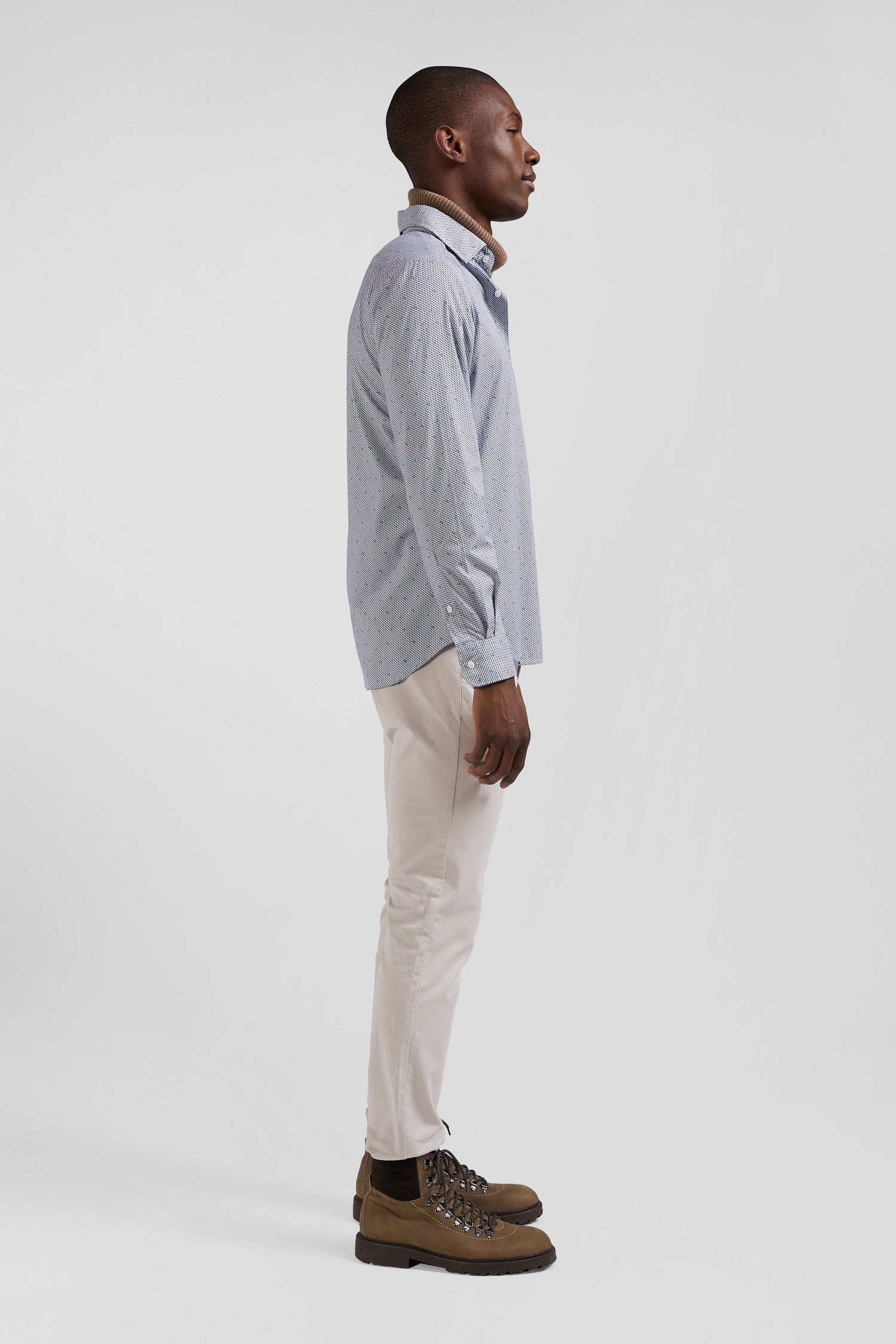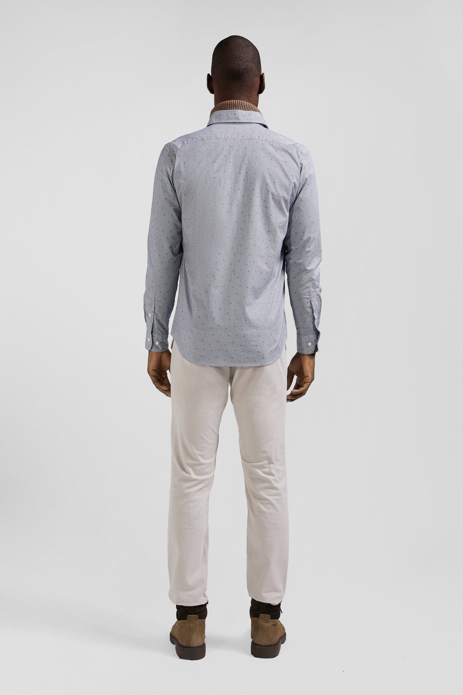 Chemise en coton à micro-motifs bleu ciel coupe Slim