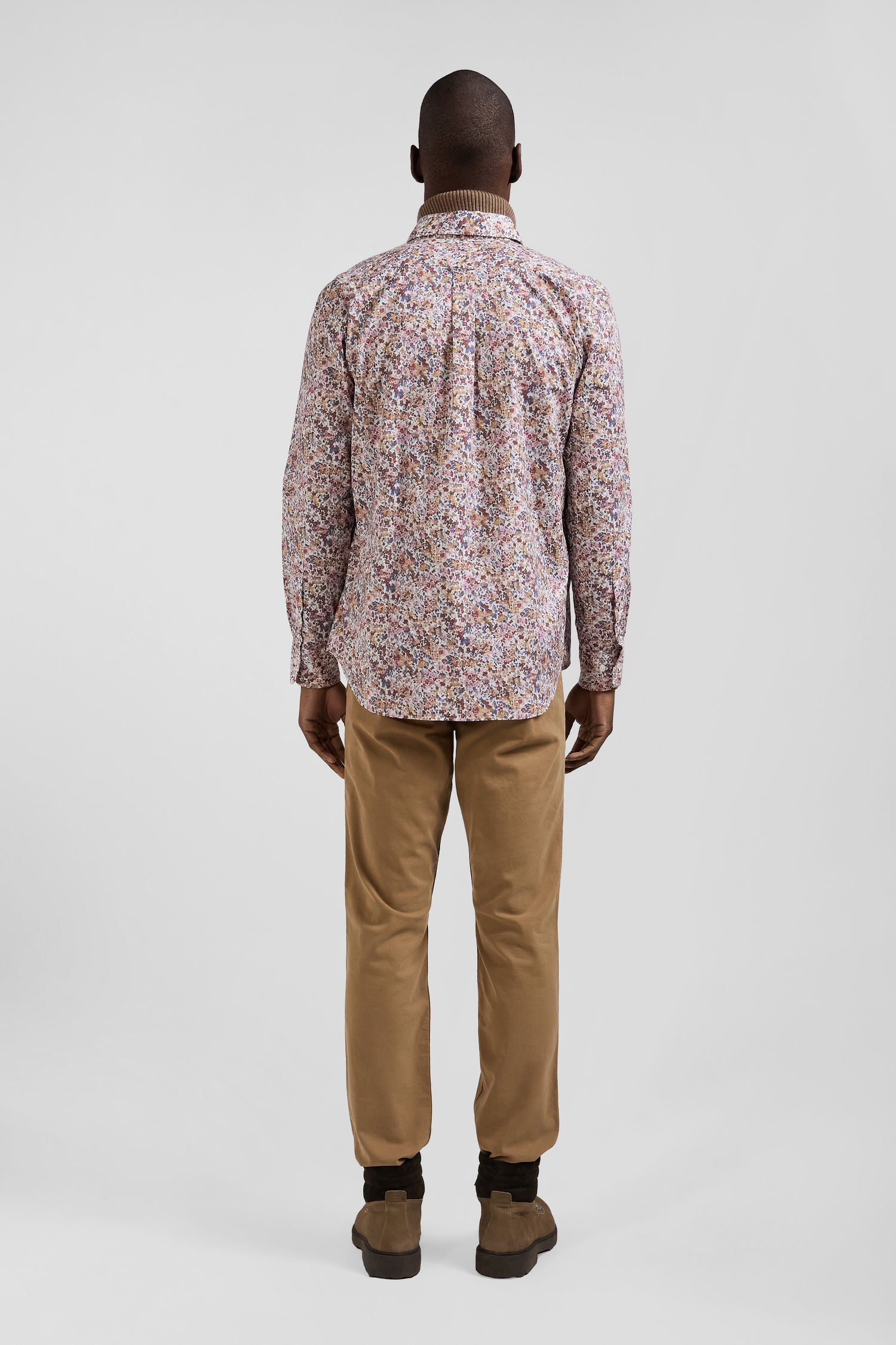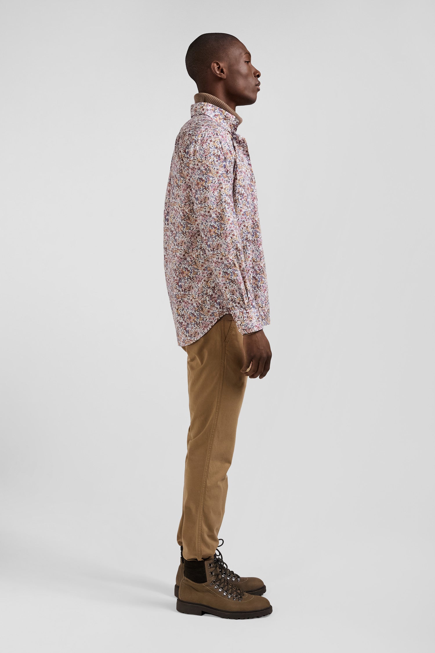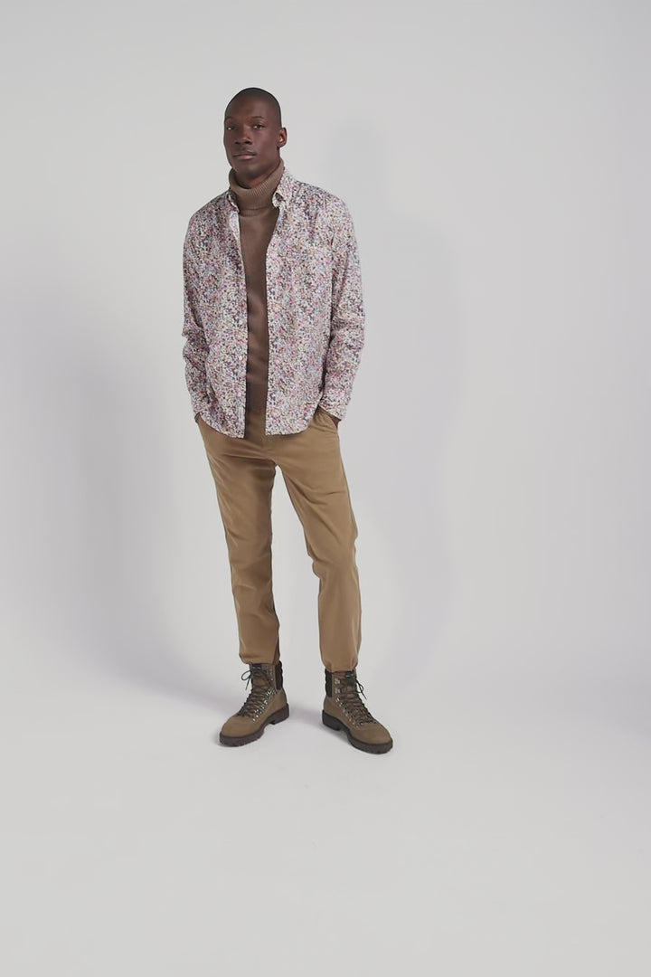 Chemise en coton à microimprimé beige coupe Regular