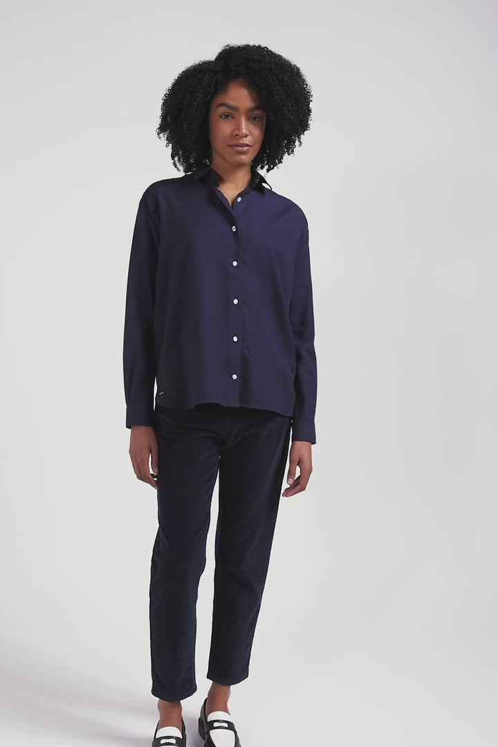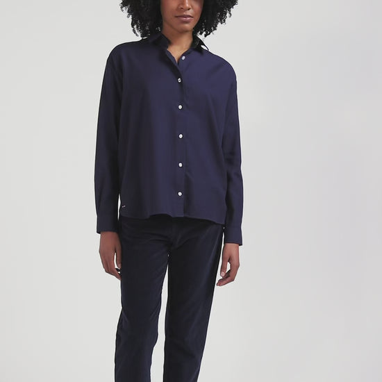 Chemise en coton et cachemire indigo coupe Oversized
