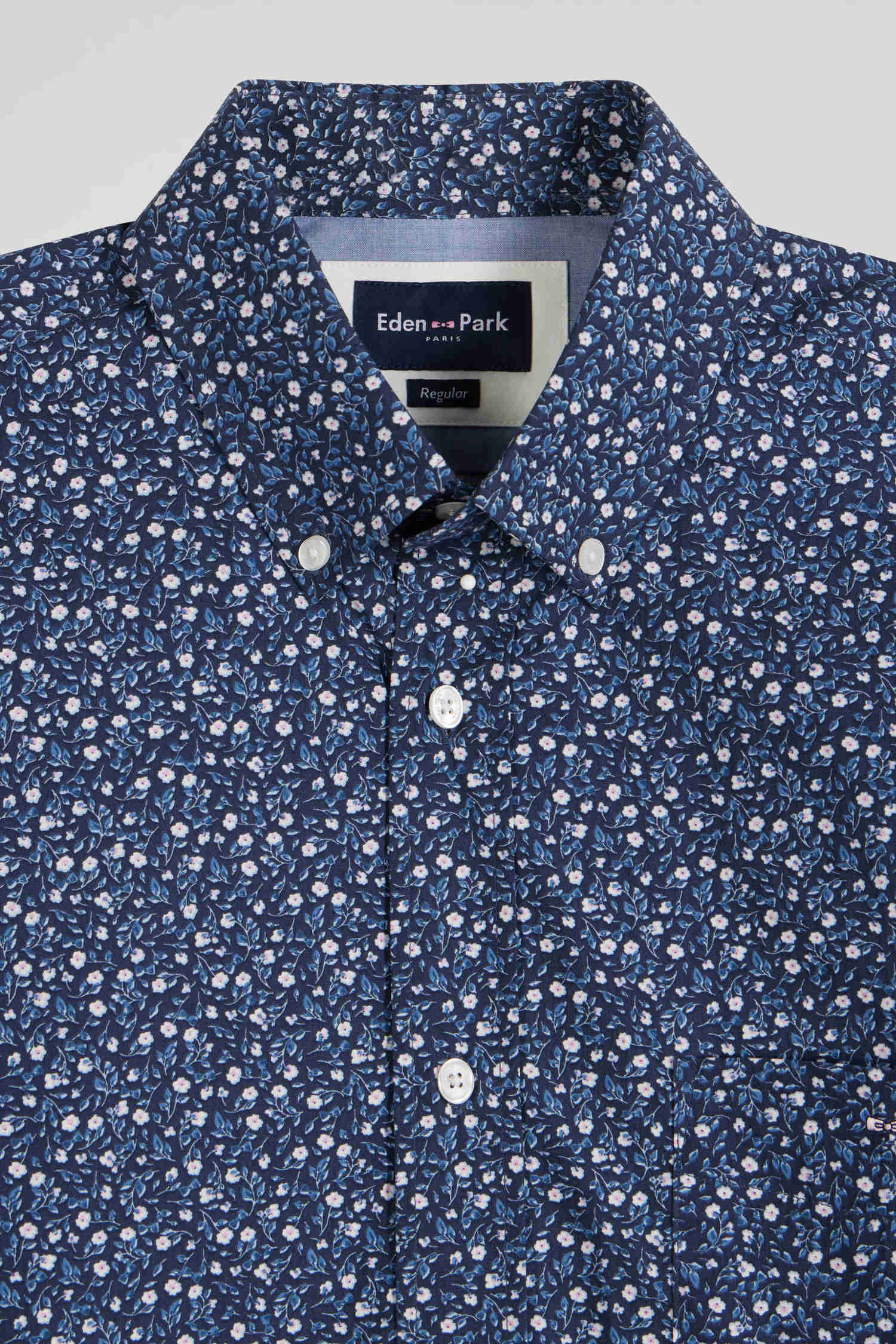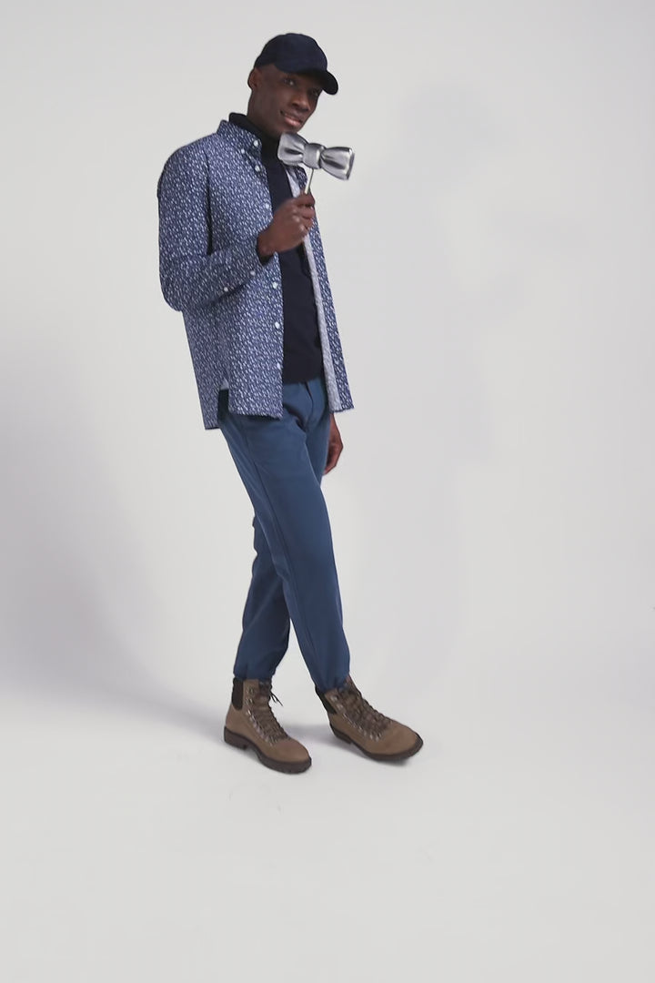 Chemise en coton indigo coupe Regular microimprimé